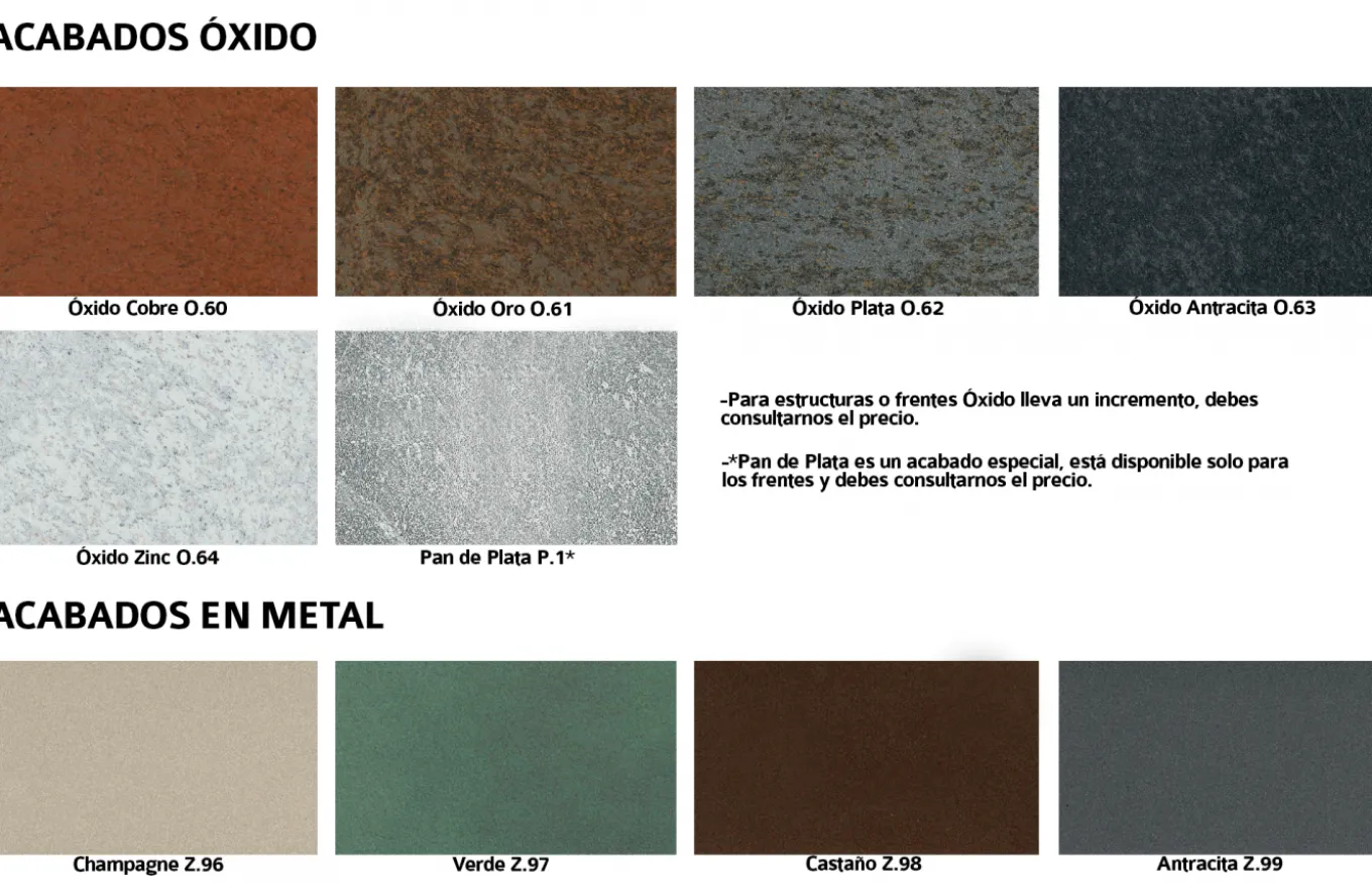 - Acabados especiales: Los acabados en Óxido o pan de plata llevan un incremento, pide presupuesto en si estás interesado.
