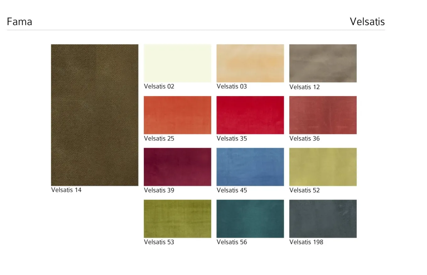 - Velsatis, resistencia a la abrasión de 100.000 ciclos. Ver imagen de acabados.