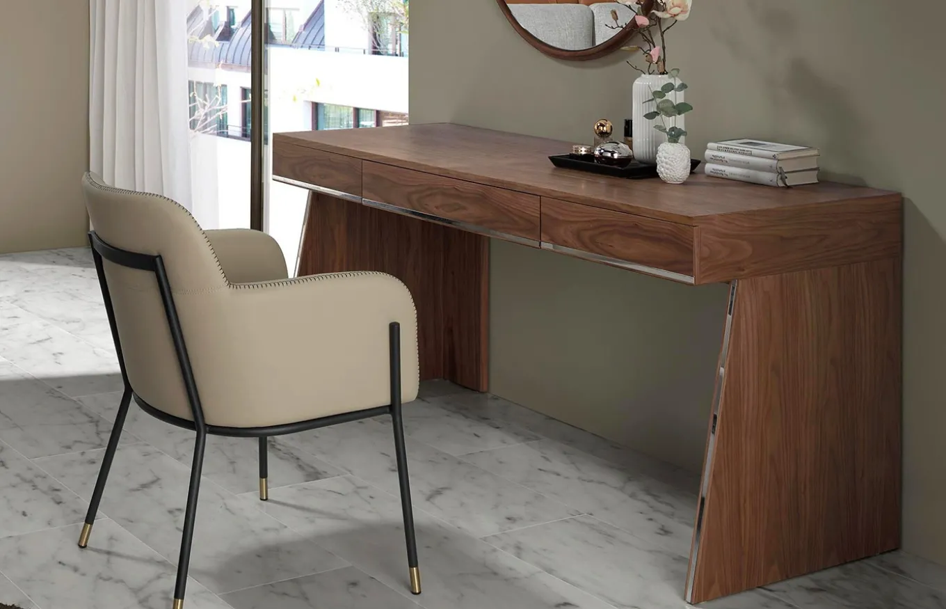 - Patas de acero epoxi color negro y detalle en acero dorado.