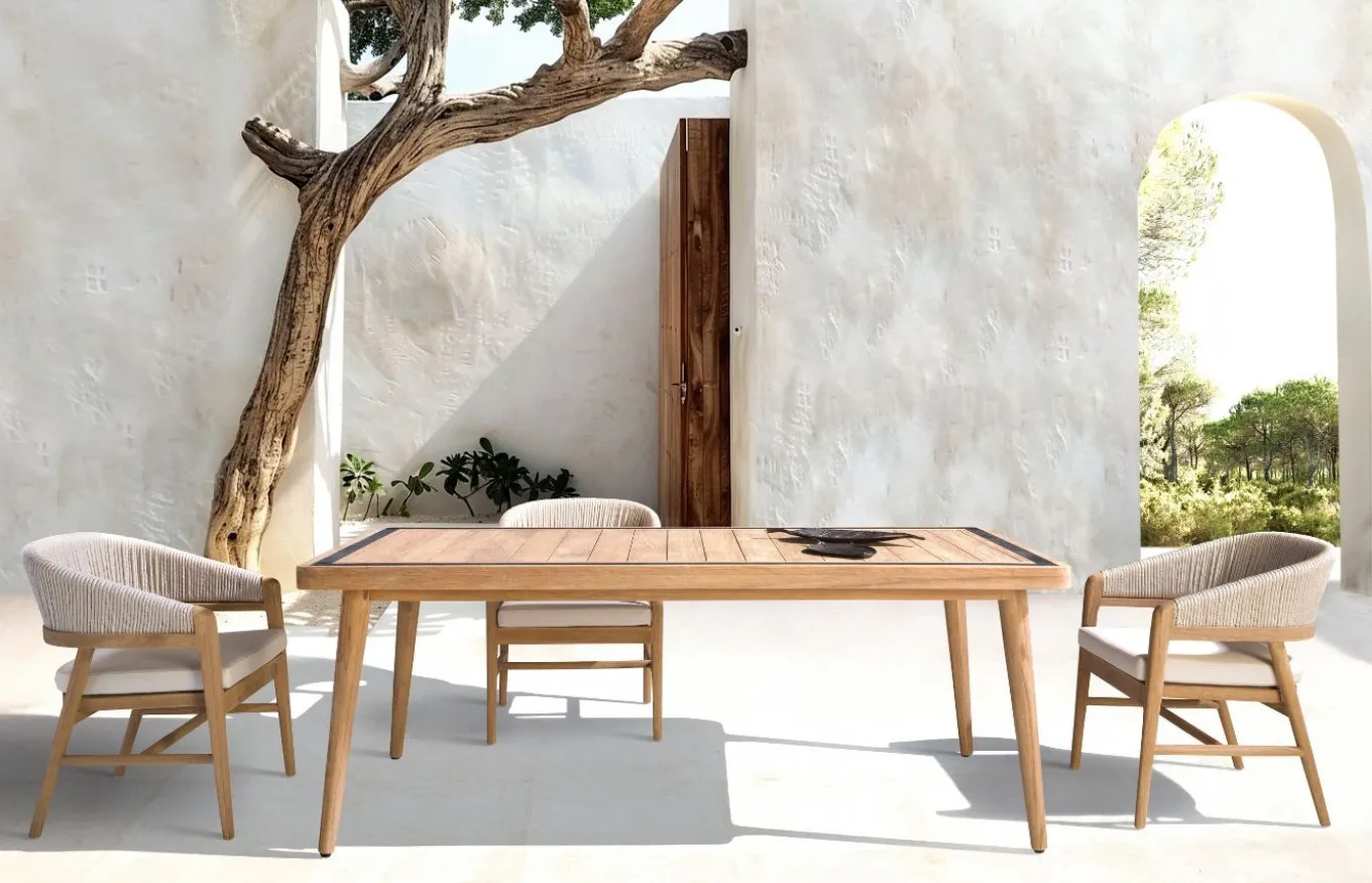 La colección de exterior Desire de Joenfa ofrece muebles cálidos y funcionales para jardines y terrazas, fabricados con materiales de alta calidad. La colección está diseñada para resistir las inclemencias del tiempo y brindar confort. Joenfa es una empresa española especializada en mobiliario de interior y exterior, destacando por su uso de materiales naturales y sostenibles como la teca reciclada y fibras artesanales.