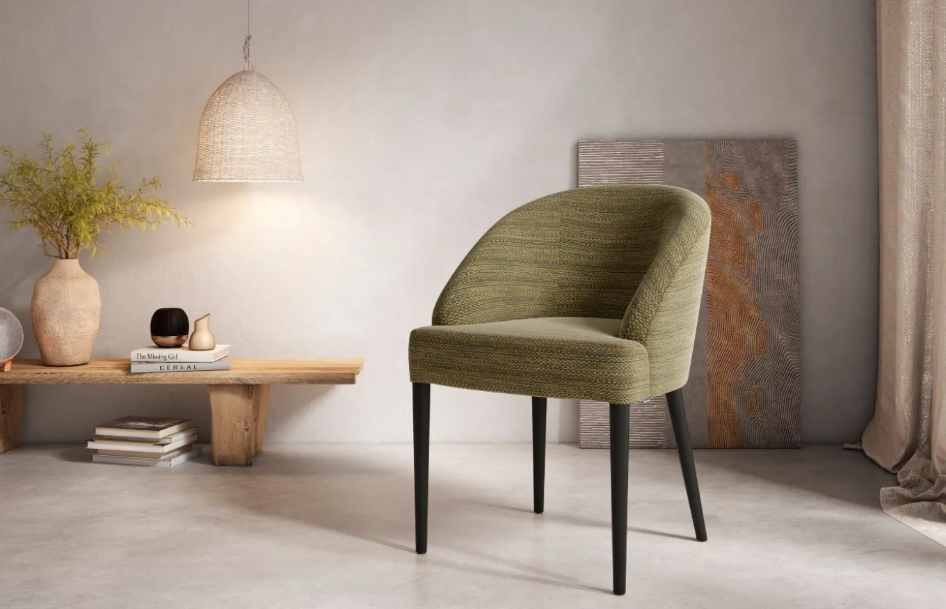 Versátil y adaptable, el sillón de comedor Round se adapta a cualquier estilo. Su diseño atemporal, combinado con la calidez de la madera de haya y la suavidad del tapizado, lo convierten en una pieza clave para crear ambientes acogedores y sofisticados. Su aspecto curvo y envolvente invita a relajarse y disfrutar de momentos especiales.