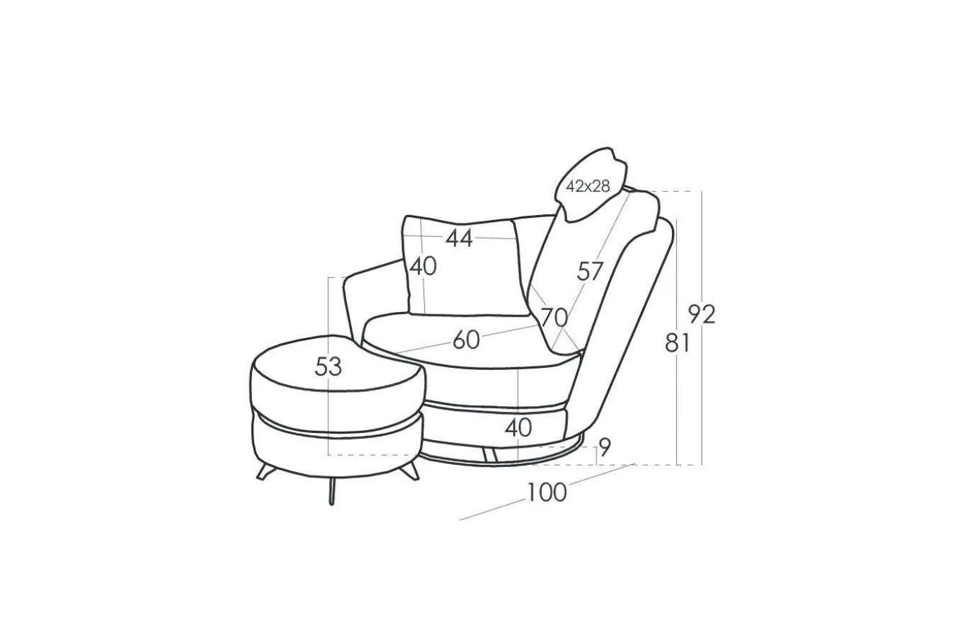 El sillón Roxane es un sillón con un diseño muy especial que te hará disfrutar de momentos inolvidables. Su respaldo curvo crea un ambiente de tranquilidad que nos permite evadirnos de todo disfrutar de los momentos de relax. La base giratoria y el puff le aportan una gran comodidad. La forma del puff nos permite adaptarlo al sillón tanto frontal como lateralmente, aportando una comodidad increíble en todas las posiciones. El sillón tiene base giratoria, mientras que el puff tiene 4 patas metálicas.