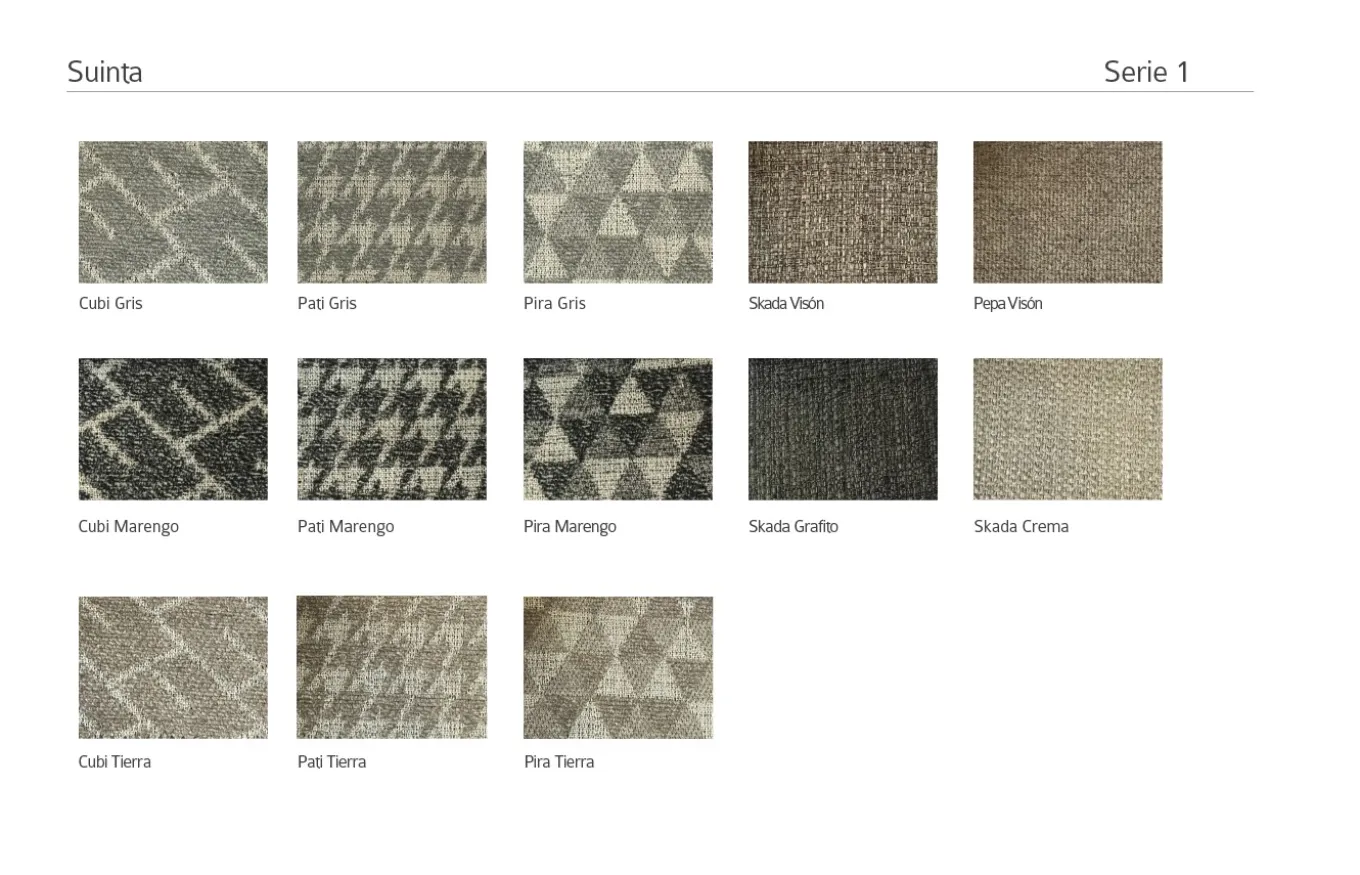 - Asiento: espuma PUR de 30 kg/m suave y fibra de poliéster termoligada. Desenfundable.