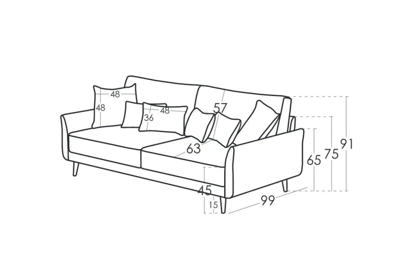 - 3 plazas: 188 cm ancho x 99 cm fondo x 91 cm alto.