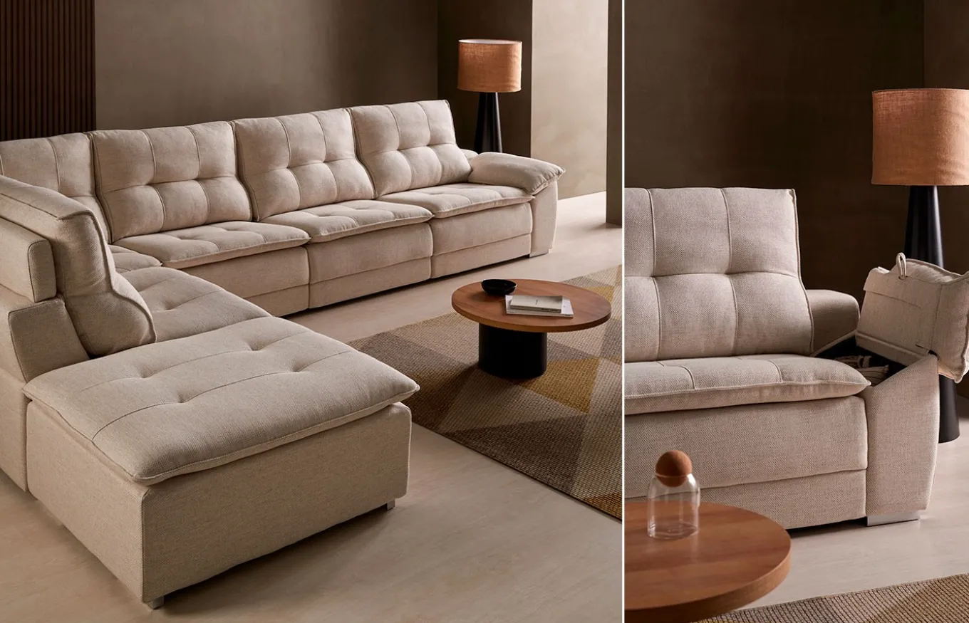 El sofá relax Gio de Acomodel es una pieza de mobiliario diseñada para ofrecer comodidad. Gio incorpora un diseño de doble sentada fabricado con un cojín mullido de espuma de poliuretano Acofoam con viscoelástica 50 kg de 7 cm de grosor.