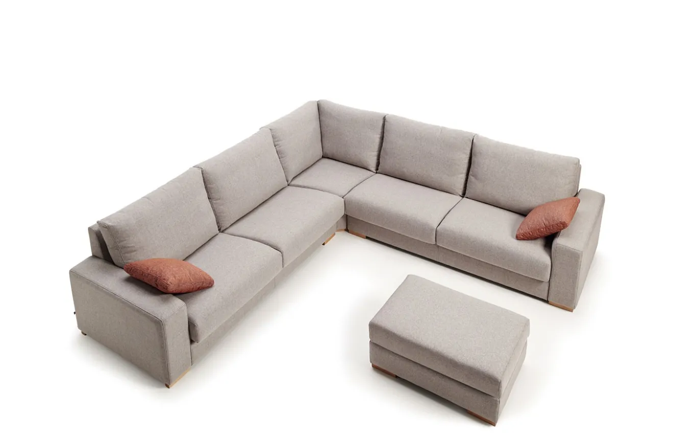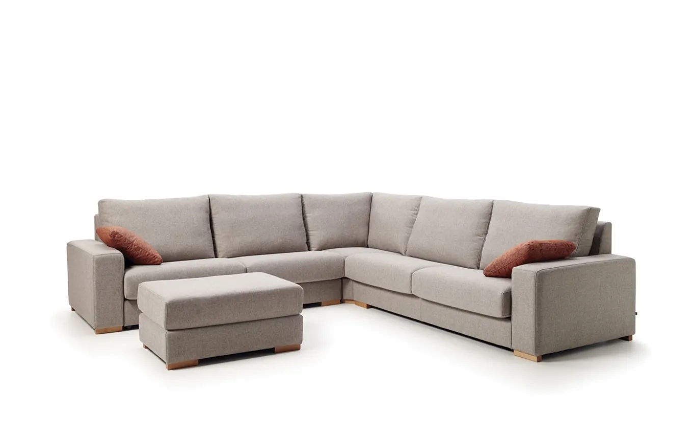 Sofá rinconera de estilo atemporal y elegante. Es un sofá muy camaleónico que se adapta perfectamente a diferentes estilos, dependiendo de la tapicería que se escoja. Su sistema modular es muy amplio y variado, lo cual nos permite hacer infinidad de combinaciones. Pero lo mejor de este sistema es su sentada de muelle zig-zag que, junto con las gomas de alta calidad utilizadas, y los grandes respaldos de fibra hacen que sea increíblemente cómodo.