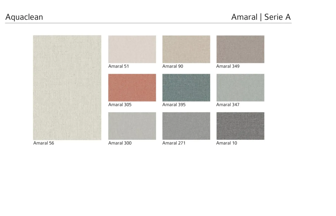 - Tapizado en Aquaclean colección Amaral. Tratamiento revolucionario que permite que se limpien las manchas simplemente utilizando un poco de agua. Aquaclean ayuda a desaparecer la mayoría de las manchas domésticas (vino, grasa, chocolate…).