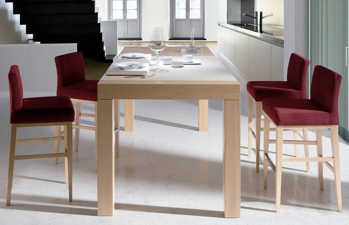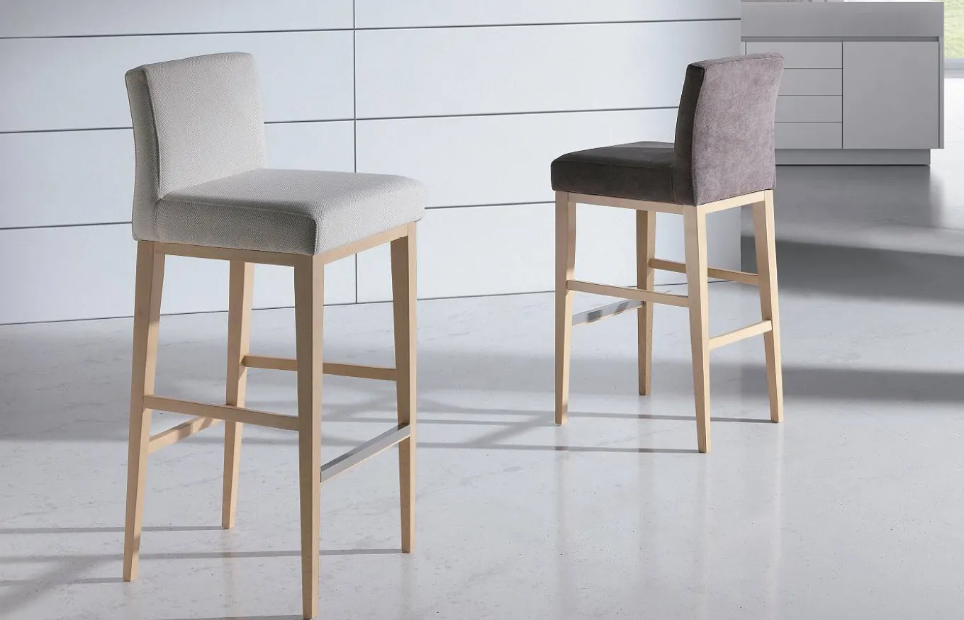 El taburete tapizado Slatten de la marca Almosa es una pieza elegante y confortable, ideal para cocinas, barras o espacios de hostelería. Su estructura está fabricada en madera de haya, una madera noble que aporta resistencia, calidez y durabilidad, con un acabado natural y de alta calidad.