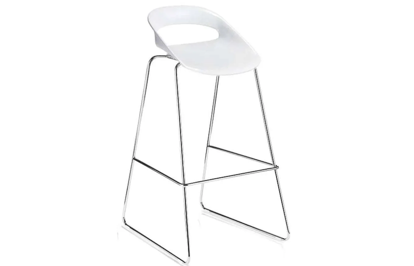 - Estructura taburete fija en filo de acero de 11 mm de diámetro, acabado cromo con tope en nylon anti rotación.