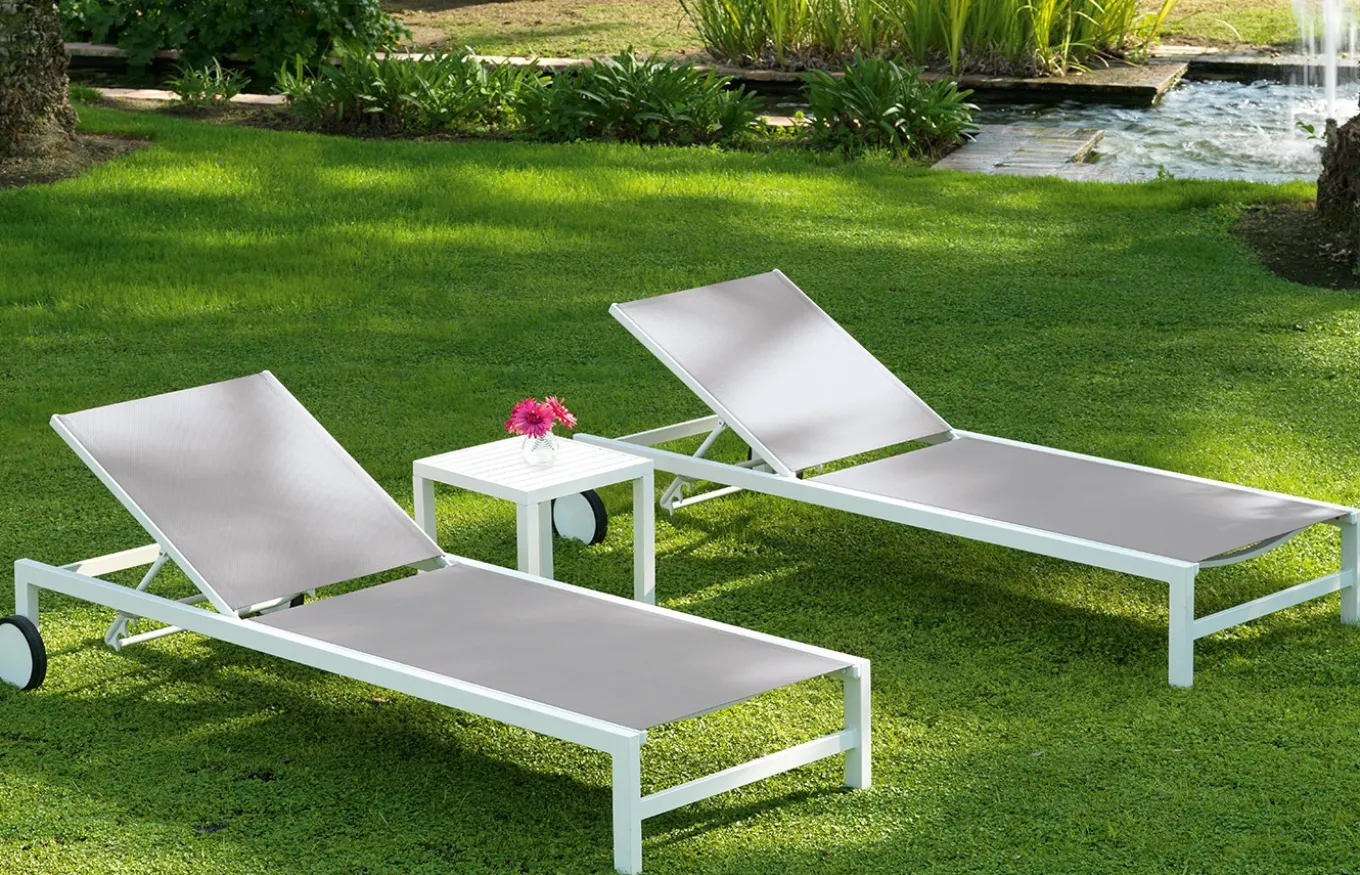 Tumbona Calpe de Aluminio. El aluminio se caracteriza por su gran resistencia a la intemperie, como a diversos factores climáticos, no es afectado nocivamente por el agua o la humedad, además, cabe destacar que su limpieza es muy sencilla.
