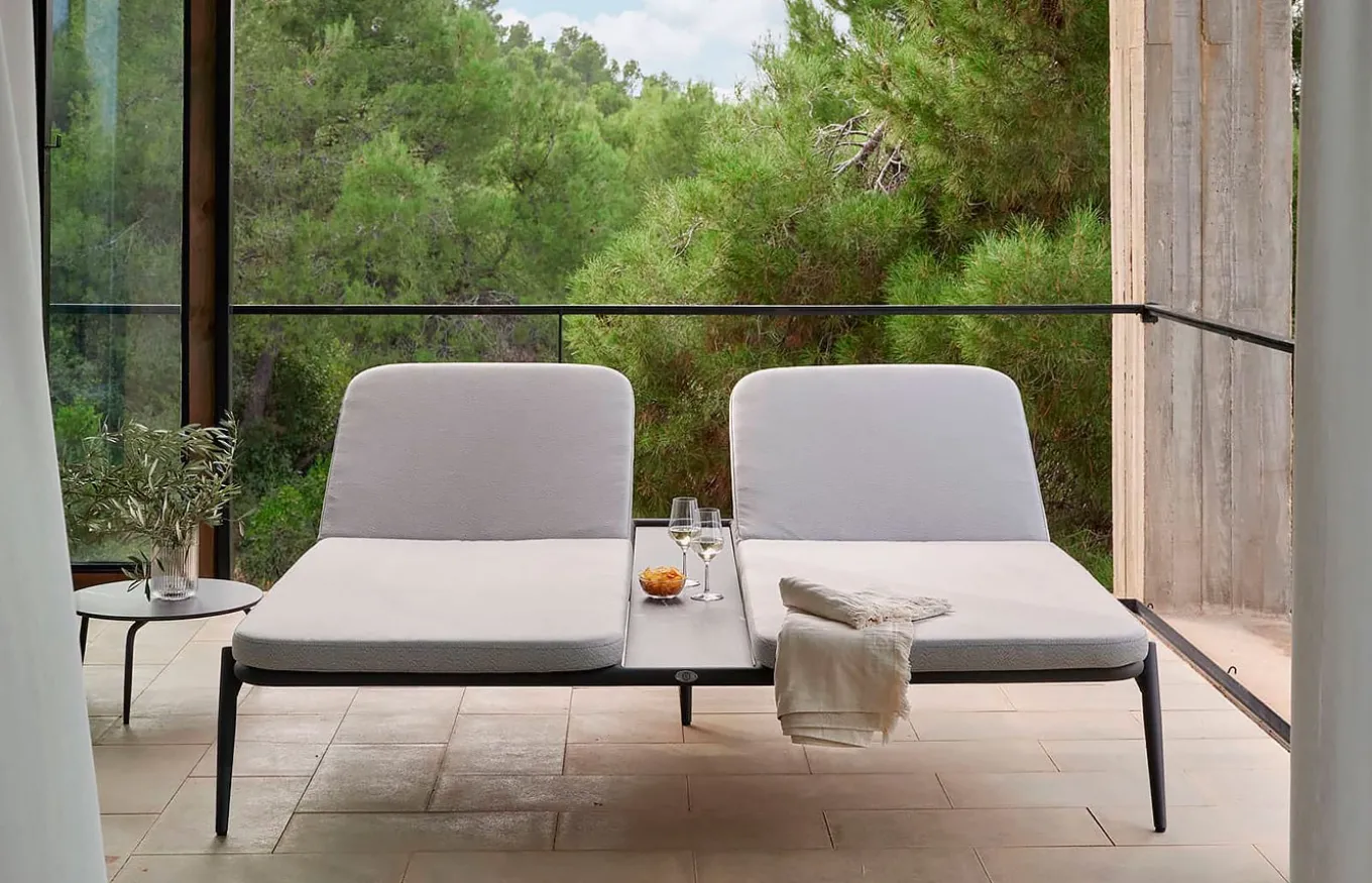 Sumérgete en el lujo de la comodidad con la tumbona doble Rodona. Diseñada para aquellos que buscan una intersección entre diseño moderno y comodidad óptima, esta pieza tiene capacidad para dos personas sin esfuerzo. Con su curvatura contemporánea y su lujosa amortiguación, Rodona se convierte en una pieza central irresistible para la relajación al aire libre.