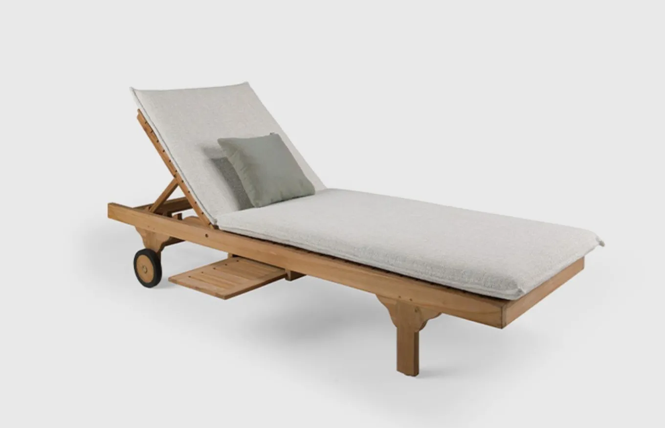 La tumbona Illetes de Joenfa destaca por su diseño relajado y sofisticado. Con una estructura de madera de Teca natural y con respaldo ajustable, es ideal para disfrutar del sol en terrazas o jardines. Joenfa es una empresa española especializada en mobiliario de interior y exterior, destacando por su uso de materiales naturales y sostenibles como la teca reciclada y fibras artesanales.