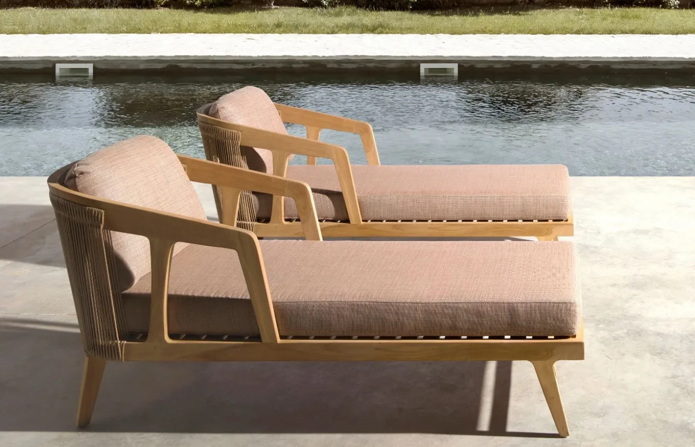 La colección de exterior Río de Joenfa ofrece muebles cálidos y rústicos, perfectos para jardines y terrazas, fabricados con materiales de alta calidad. La colección está diseñada para resistir el clima y brindar comodidad. Joenfa es una empresa española especializada en mobiliario de interior y exterior, destacando por su uso de materiales naturales y sostenibles como la teca reciclada y fibras artesanales.