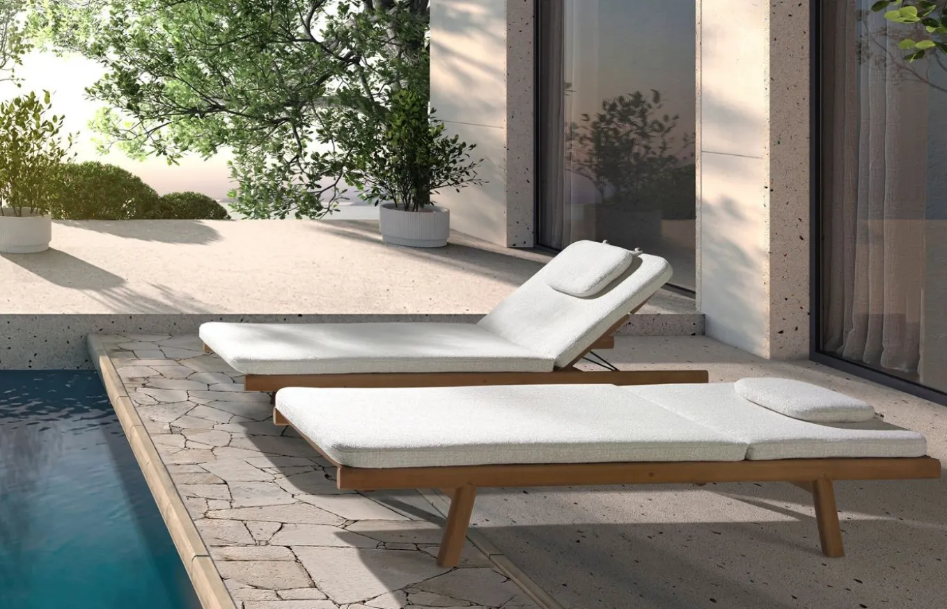 La tumbona Roda de Joenfa destaca por su diseño minimalista y sofisticado. Cuenta con una estructura de madera de Teca natural y con un respaldo ajustable, es ideal para disfrutar del sol en terrazas o jardines. Joenfa es una empresa española especializada en mobiliario de interior y exterior, destacando por su uso de materiales naturales y sostenibles como la teca reciclada y fibras artesanales.