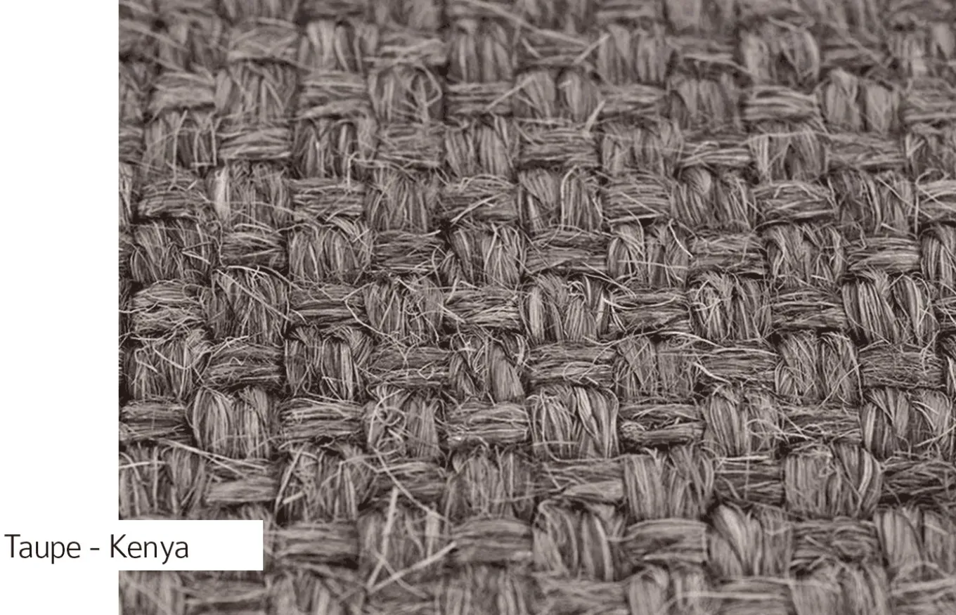 La Alfombra Kenya está confeccionada en fibra de sisal trenzada, perfecta para aportar un toque rústico y mediterráneo a cualquier ambiente.