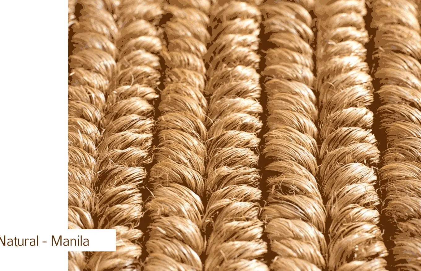 La alfombra Manila es trenzada y está fabricada con fibra de abacá natural, 100% hecha a mano. Se trata de una alfombra elegante, fuerte y con mucho carácter.