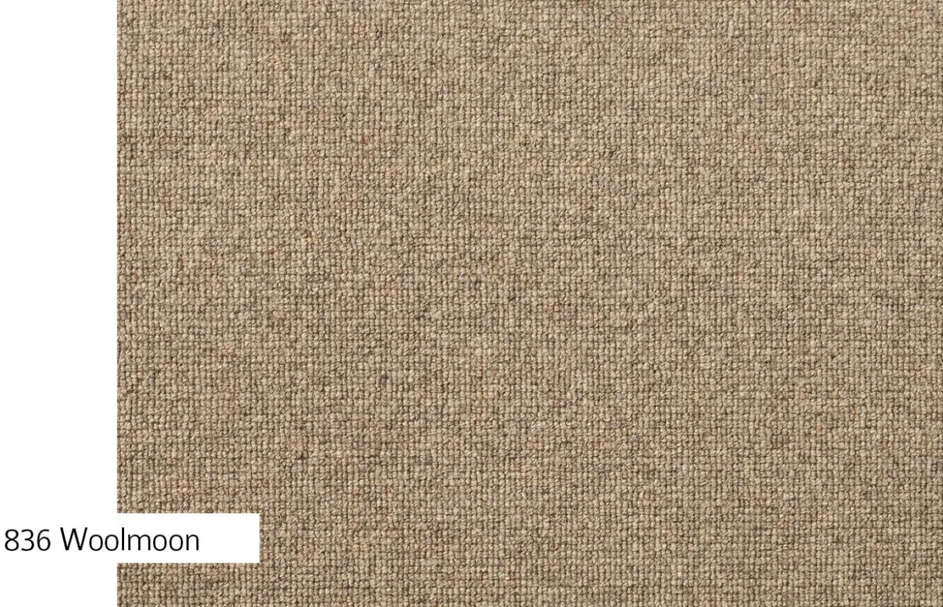 Las Alfombras a medida de la colección Woolmoon son de lana. Su confección en bucle, confiere a la colección un atractivo aspecto además de una gran resistencia al uso y al paso del tiempo, un gran coeficiente de absorción acústica y una original estética que no pasa de moda y encaja con cualquier estilo decorativo.