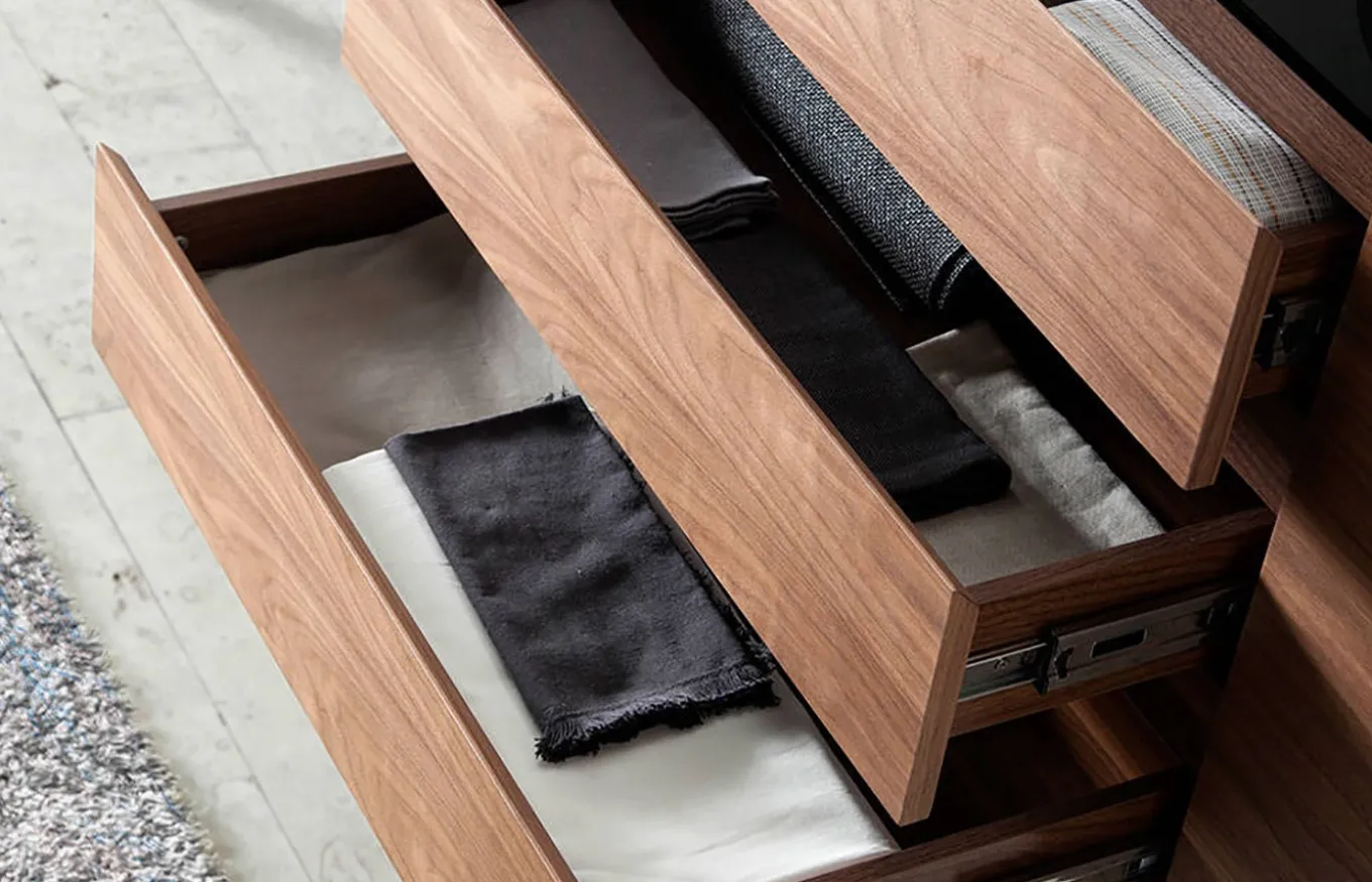 - Puertas y tres cajones centrales con sistema de cierre retardado.