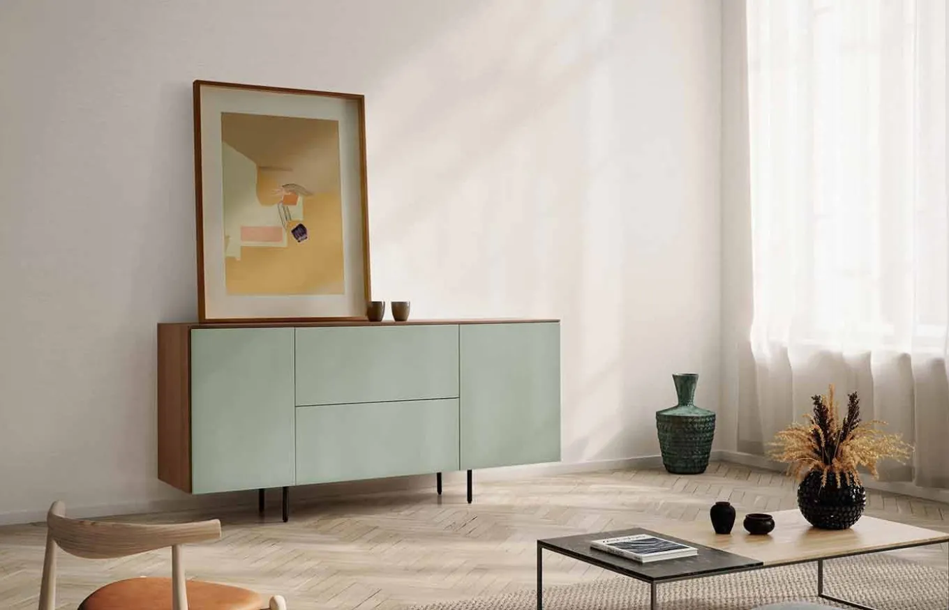 Aparador de estilo moderno perteneciente a la colección Crea. Inspirada en la naturaleza de la madera y la tecnología, la colección CREA está influenciada por la armonía japonesa, la tendencia vintage y la verticalidad actual.