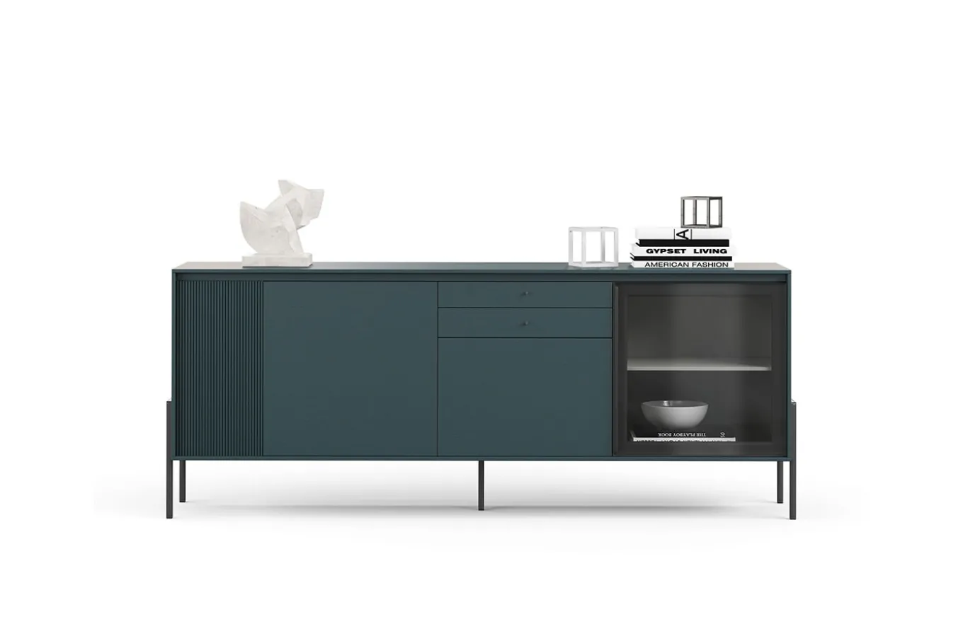 Aparador de estilo moderno. La colección Kross se desarrolla en torno a una gran variedad de módulos con distintas medidas, puertas batientes, abatibles, cajones y una multitud de opciones con diversidad de materiales y acabados. Una manera diferente de entender el mueble, pensado no solo para ordenar, sino para el placer de crear y diseñar tu propio mueble.