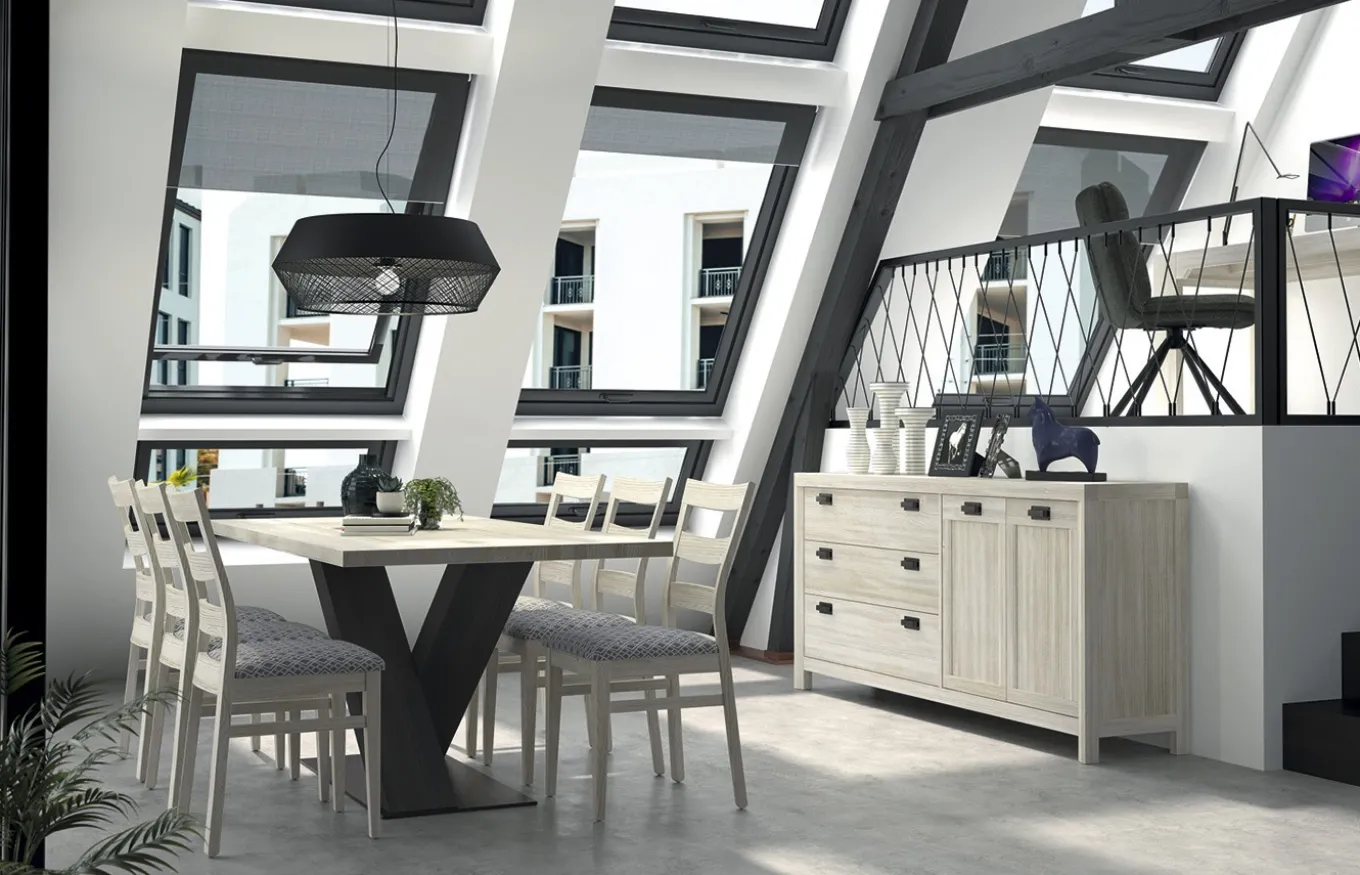 Aparador perteneciente a la colección Lyon de la de Grupo Seys. Essential, es una nueva línea que transmite la esencia del mueble, su valor en lo cotidiano, en el día a día, su importancia en nuestro hogar, esencia atemporal que nos envuelve en matices aprendidos a lo largo de la experiencia pero que a la vez llega con una frescura actual. La nueva línea se inspira en el equilibrio de las formas, líneas que abrazan el valor del mueble de siempre en autentica madera con estilo totalmente contemporáneo.