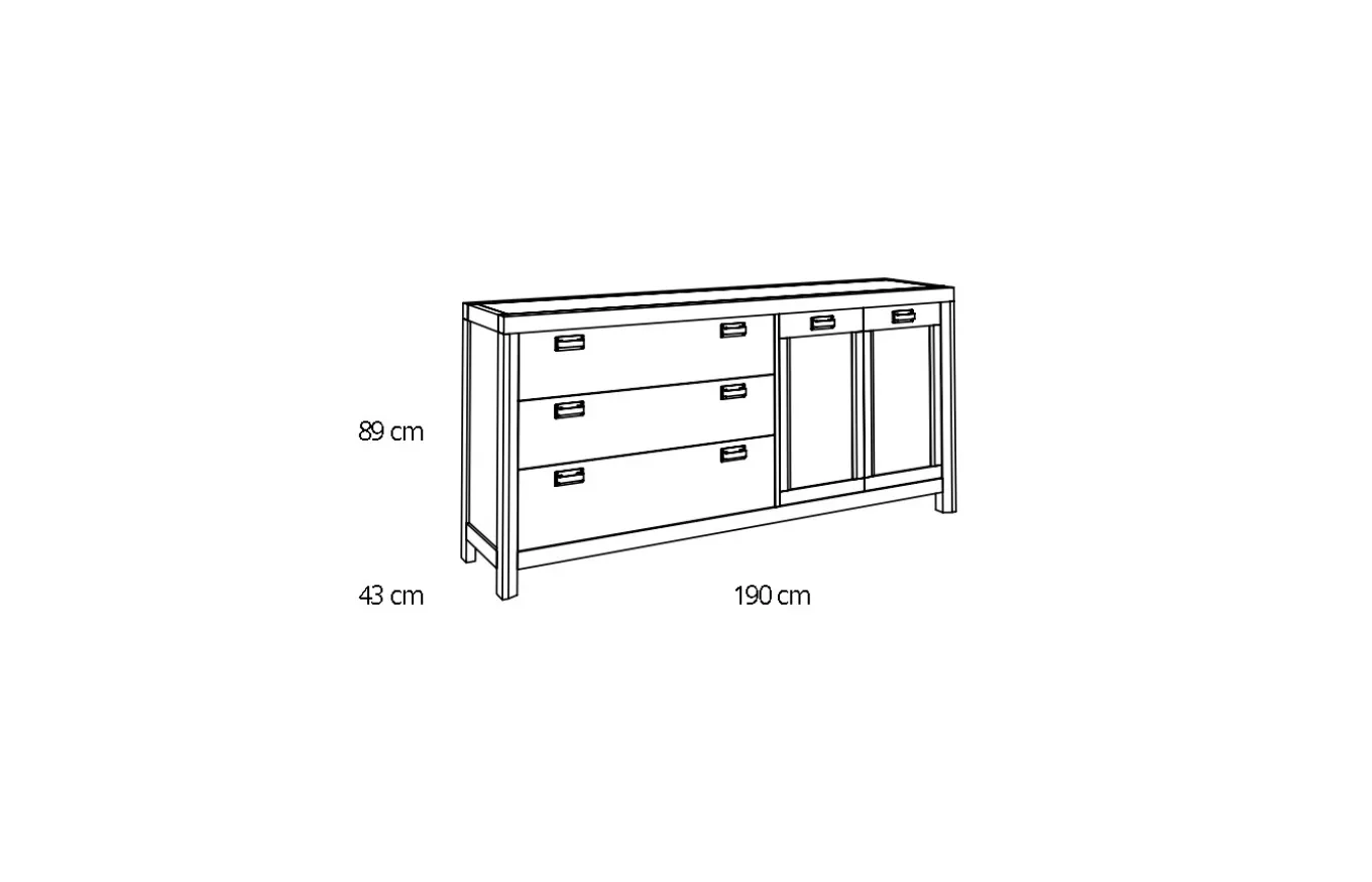 - 190 cm ancho x 89 cm alto x 43 cm cm fondo.