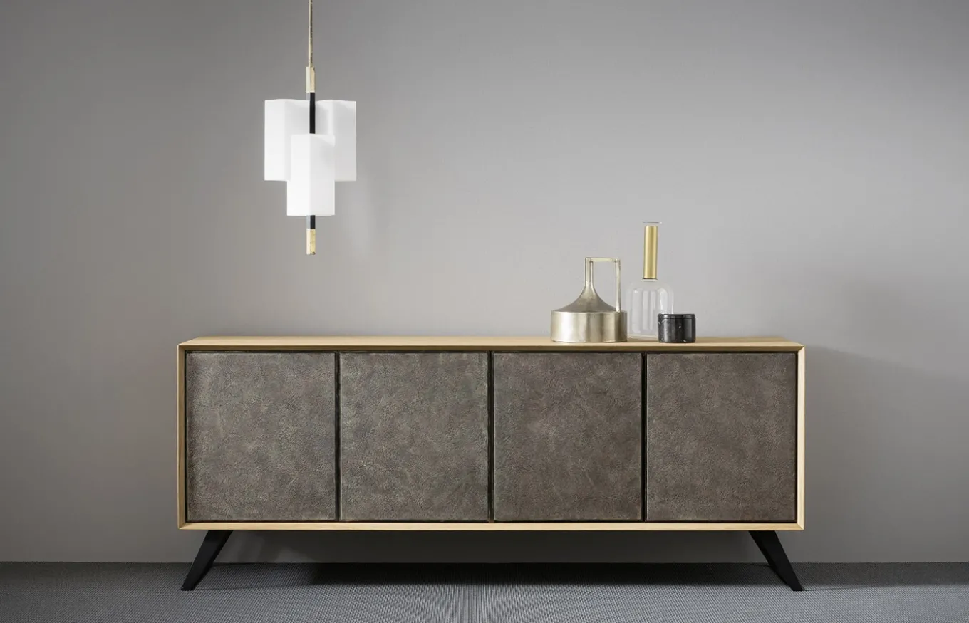 El aparador Nook II tiene un diseño de líneas contemporáneas y nórdicas, desatan un ambiente de gran tendencia. Además de elegante, es funcional, pues tiene cuatro puertas con dos baldas interiores en madera. El espacio es suficiente como para alojar los pequeños utensilios del hogar. Sus patas de hierro tienen forma de patín y fijan la mirada hacia el exterior.