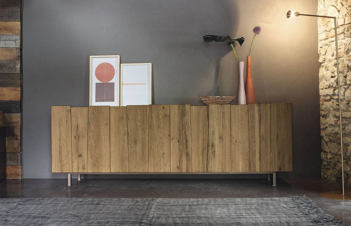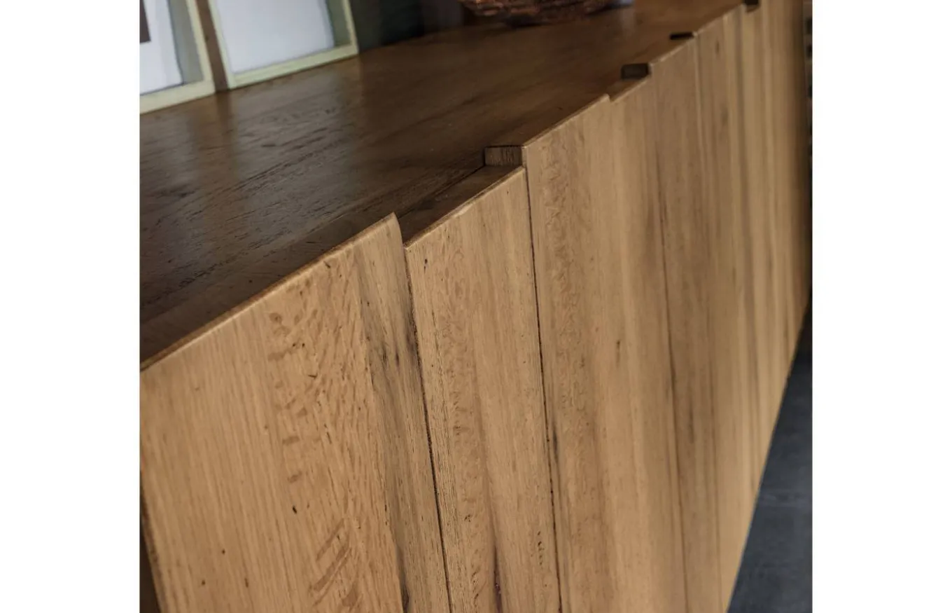 Aparador perteneciente a , una marca de diseño y fabricación italiana que ofrece gran variedad de productos para cualquier estancia. Busca siempre la distinción a través del empleo de materiales como la madera natural o el hierro, dando lugar a esa estética tan característico de la marca. El Aparador Urban Ranch tiene un particular diseño de sus frentes en el que la alternancia asimétrica de alturas en la parte superior, junto con el aspecto natural de la madera, contribuyen a que el aspecto general del aparador sea orgánico y atractivo.