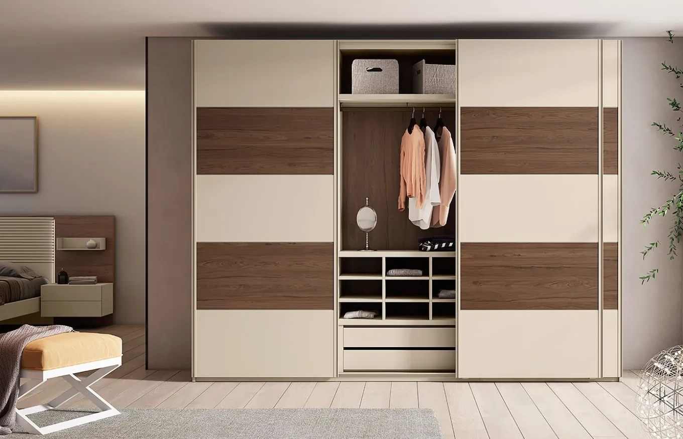El armario Nihon Be es amplio y elegante. Cuenta con un gran espacio en su interior para mantener tu habitación ordenada. Los armarios de puertas correderas colgadas son una opción práctica y elegante.