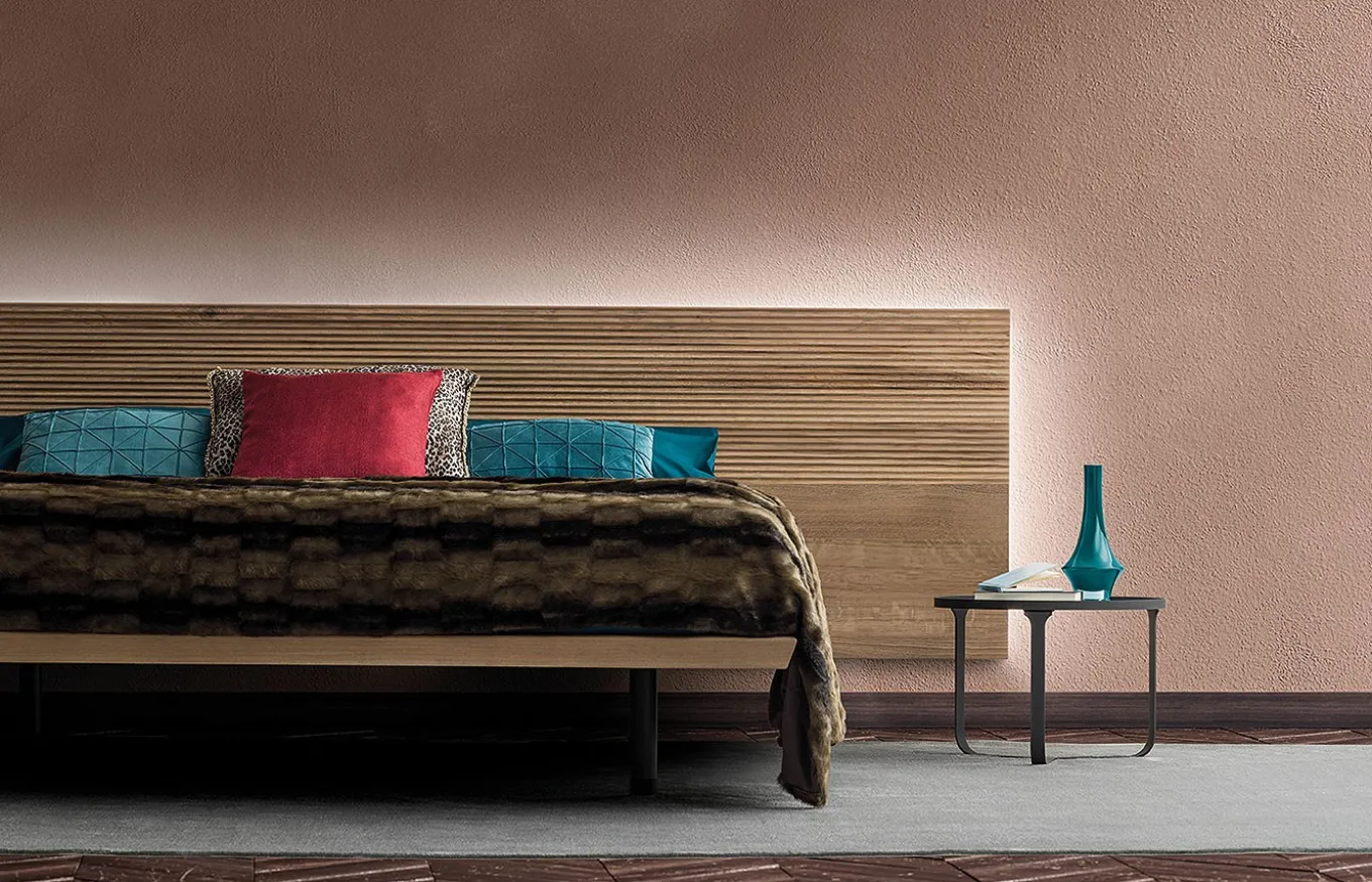 Composición de dormitorio con cabecero Zen suspendido perteneciente a la colección Free Beds de , una marca de diseño y fabricación italiana.