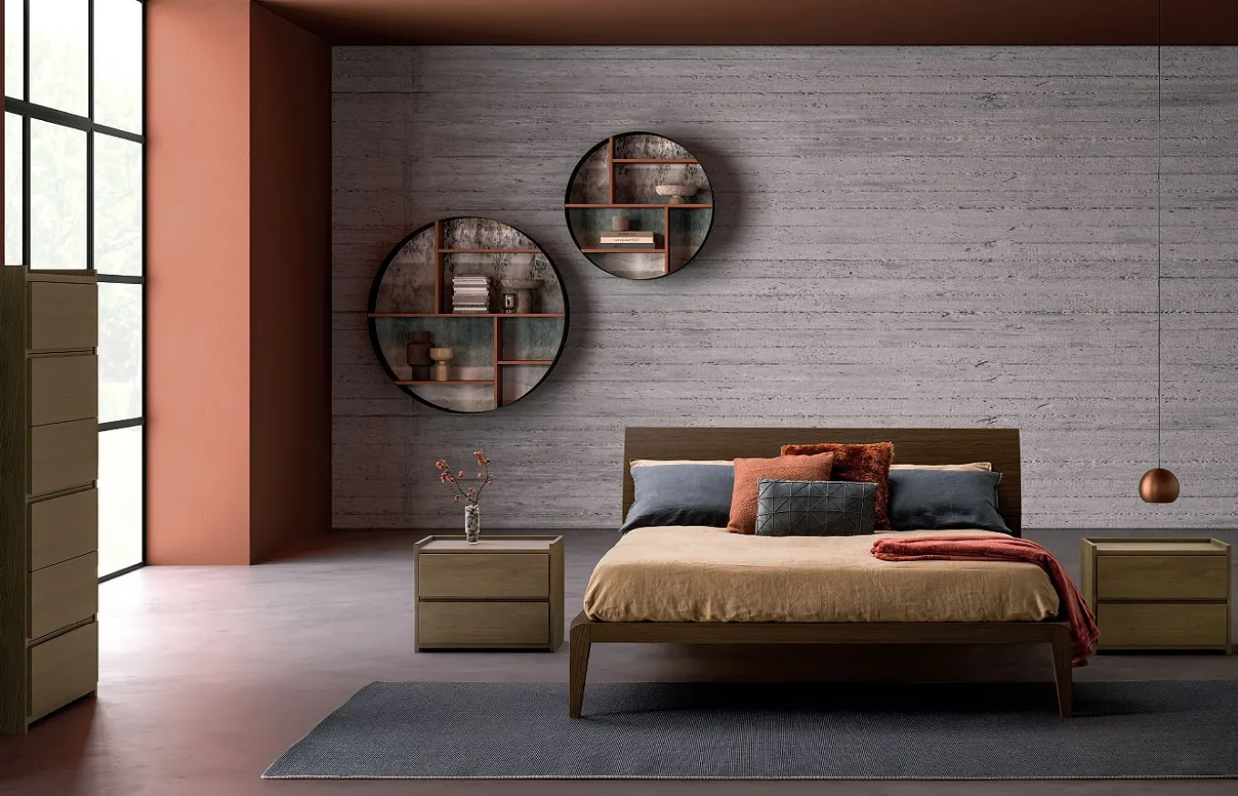 Composición de dormitorio con cabecero Shark perteneciente a la colección Free Beds de , una marca de diseño y fabricación italiana.