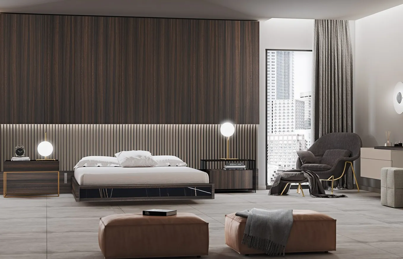 El Dormitorio Alis, perteneciente a la colección Bedrooms de Emedé, nace de la idea de aunar dos de los principales valores de Emedé:tradición, entendida como una vuelta al trabajo de ebanistería y tecnología, entendida como la utilización de maquinaria puntera para su perfecta ejecución. El panel está conformado por listones de madera perfectamente encastados sobre una trasera plana, generando una estética intemporal que desprende calidad.