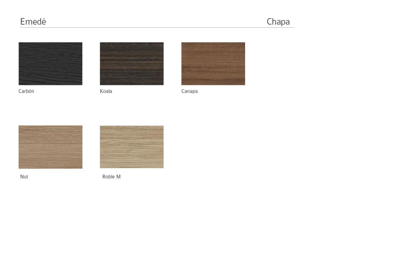- Tableros chapados con madera natural procedente de bosques que garantizan una tala sostenible.