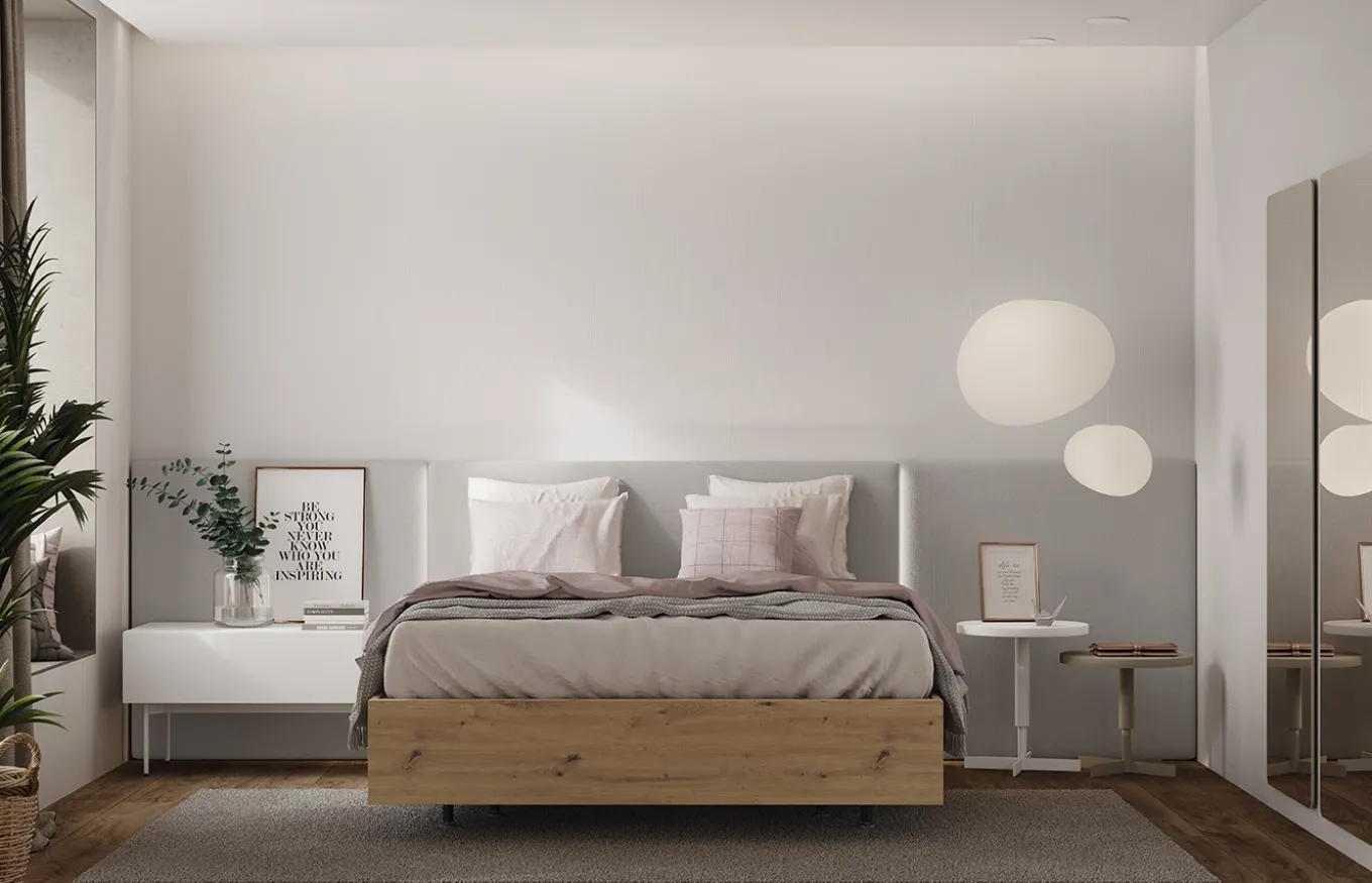 Crea un oasis de paz y sofisticación en tu dormitorio con la combinación perfecta de elementos de Lagrama: el cabezal tapizado con luz LED Line y las mesitas de noche Outline y OX. La tira de luz LED integrada en los extremos del cabecero crea una atmósfera relajante y acogedora, perfecta para momentos de lectura o descanso.
