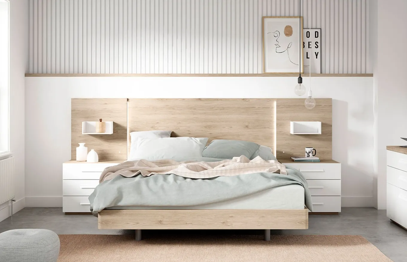- Cabecero liso con iluminación led en posición vertical.