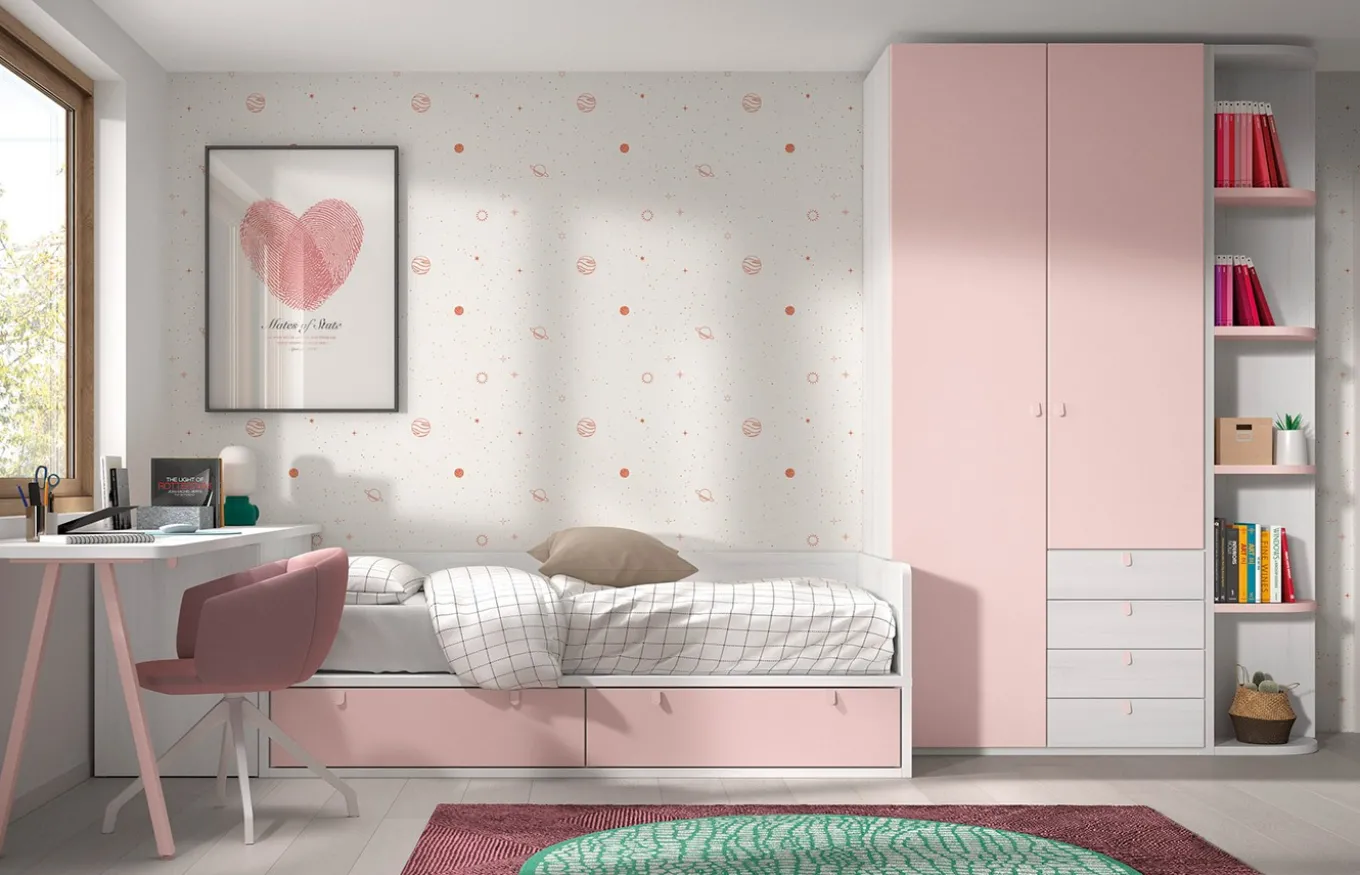 La colección Formas Evolution 22 ofrece soluciones para habitaciones infantiles y juveniles que te permitirán aprovechar el espacio al máximo. Podrás elegir los elementos que necesites y personalizarlos con una gran gama de colores y acabados. Puedes encontrar en esta colección camas nido y compactos, modulares y convertibles y literas, entre otros.