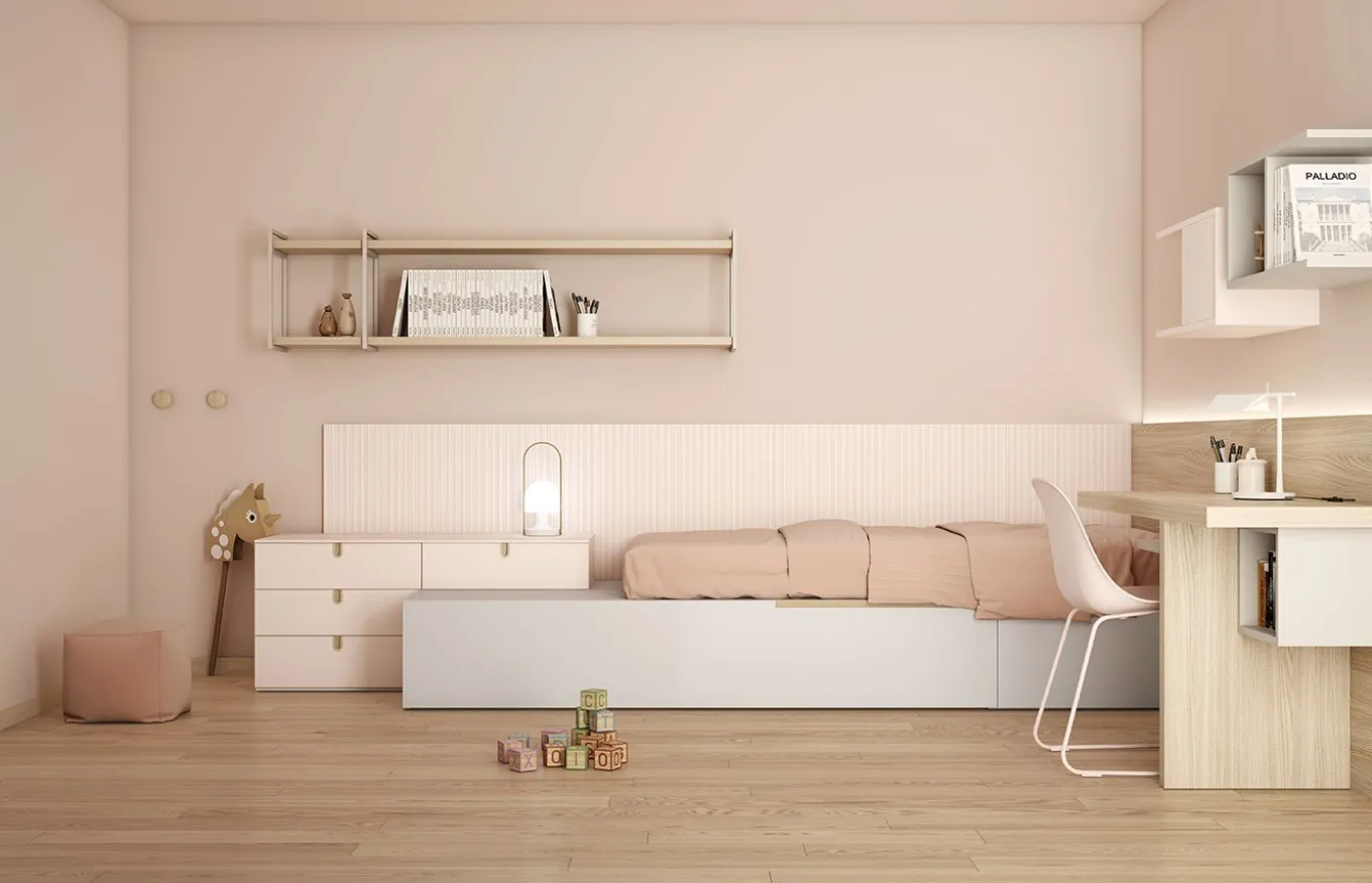 Habitación infantil juvenil de la colección Tweed de Tobisa con los siguientes elementos: