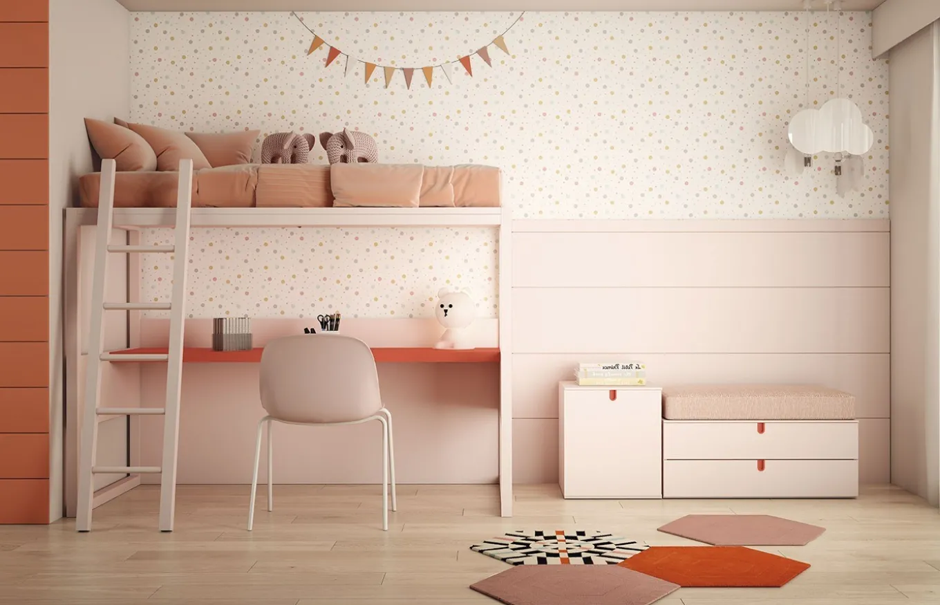 Habitación infantil juvenil de la colección Tweed de Tobisa con los siguientes elementos: