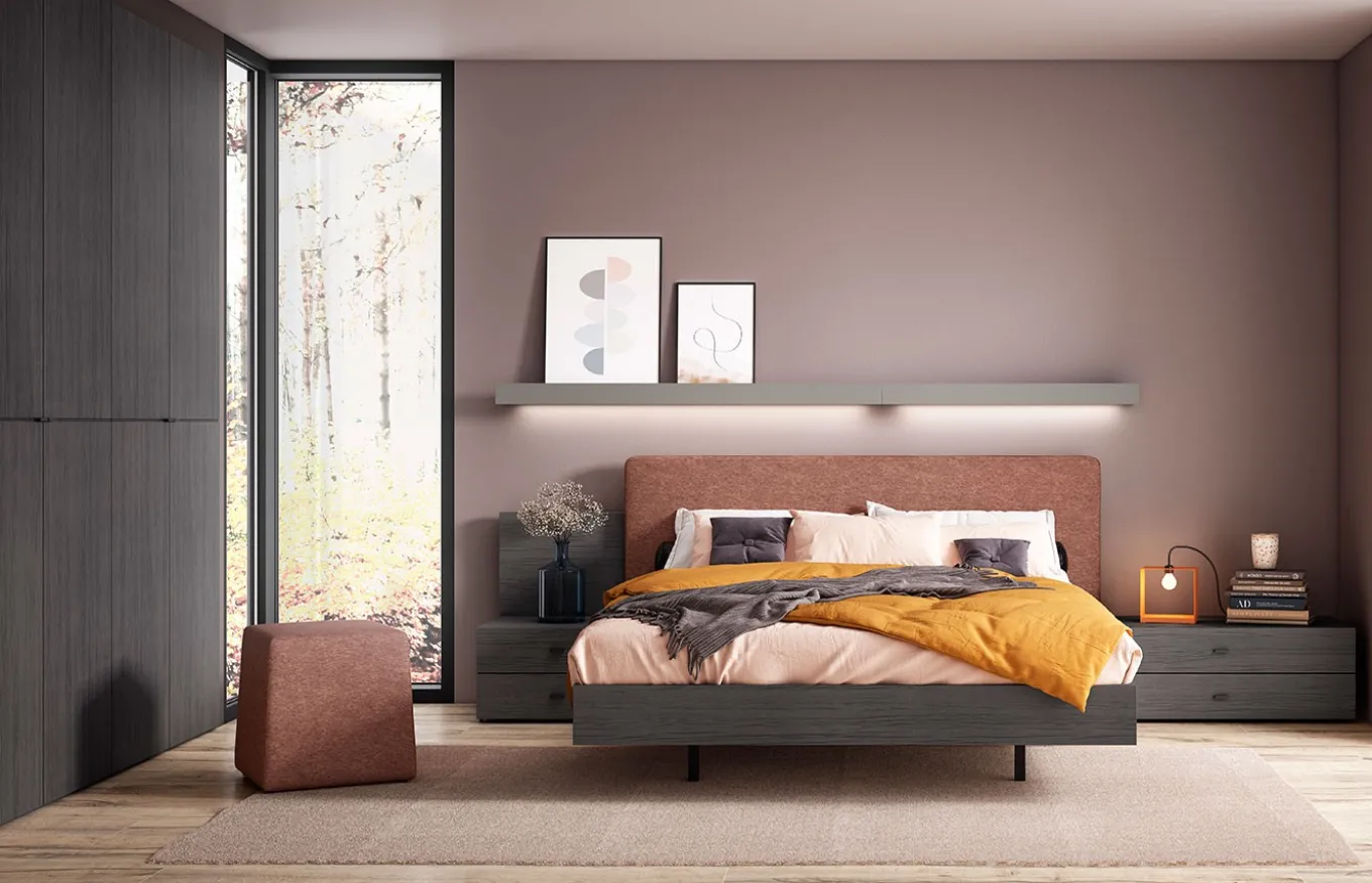 *El acabado de la imagen es melamina color Gris Arcilla, lacado color Greda y téxtil color Óxidotex.