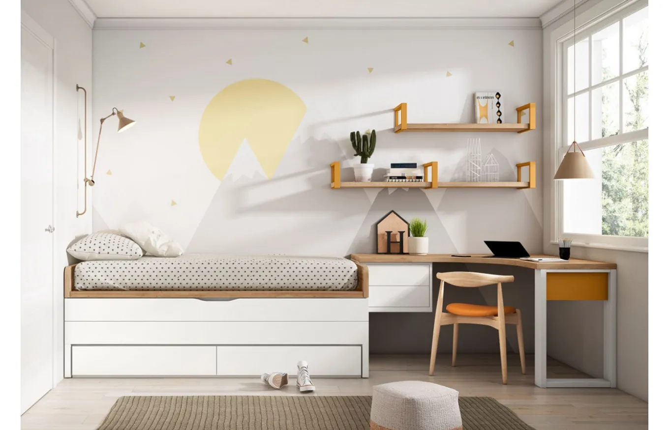 La habitación juvenil con bicama de Lan Mobel es un tipo de mueble que combina dos camas en una sola estructura. Es una solución práctica para aprovechar al máximo el espacio en habitaciones pequeñas, dormitorios infantiles o juveniles, o para tener una cama extra para invitados.
