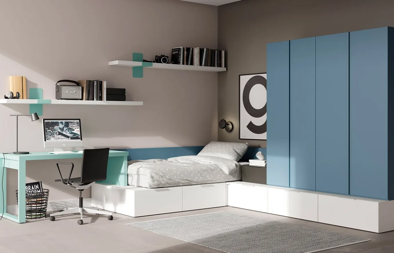 El sistema Kubox 05 de Lagrama es una solución modular y versátil que te permite crear la habitación juvenil perfecta para las necesidades de tu hij@. Con sus cajas multifuncionales, puedes crear camas, armarios, escritorios, estanterías y mucho más. Puedes combinarlo y adaptarlo a cualquier espacio, sin importar el tamaño o la forma de la habitación.