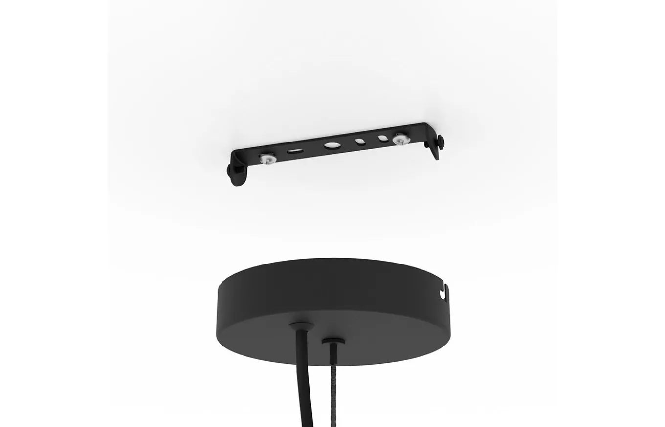 La lámpara colgante Balmes está fabricada con una pantalla de formas orgánicas de cristal mate en color blanco, está suspendida de un dosel metálico del mismo color con un cable textil en color negro y tres cuerdas metálicas. La luminaria colgante encaja perfectamente en los estilos de decoración modernos y ofrece una iluminación elegante.
