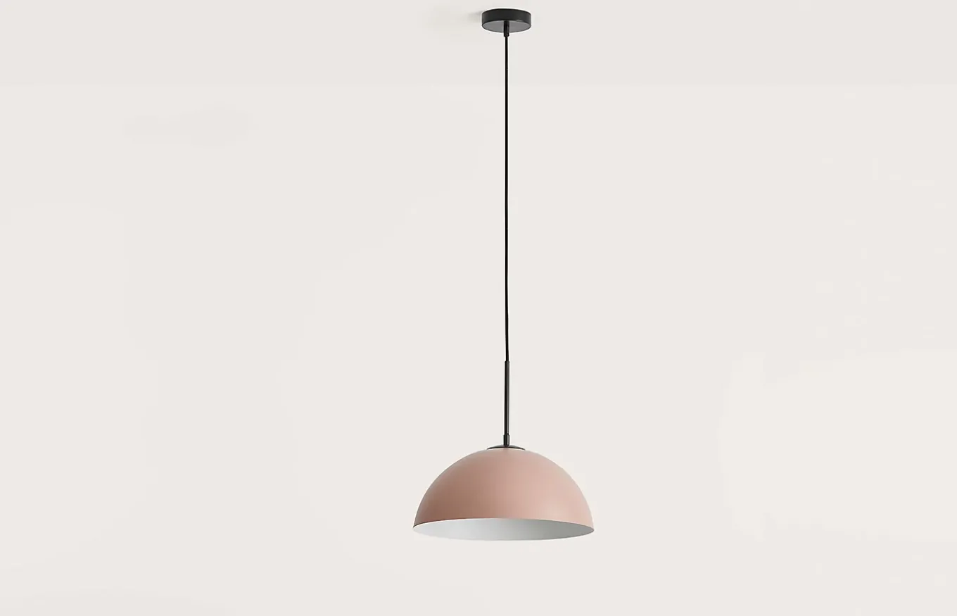 La lámpara colgante Beta, está fabricada en acero. Su pantalla metálica tiene color blanco en el interior para proyectar la fuente de luz y en el exterior puedes elegir un color de la paleta de colores de Aromas. Esta lámpara encaja perfectamente en diferentes espacios como el salón, el comedor o la cocina.