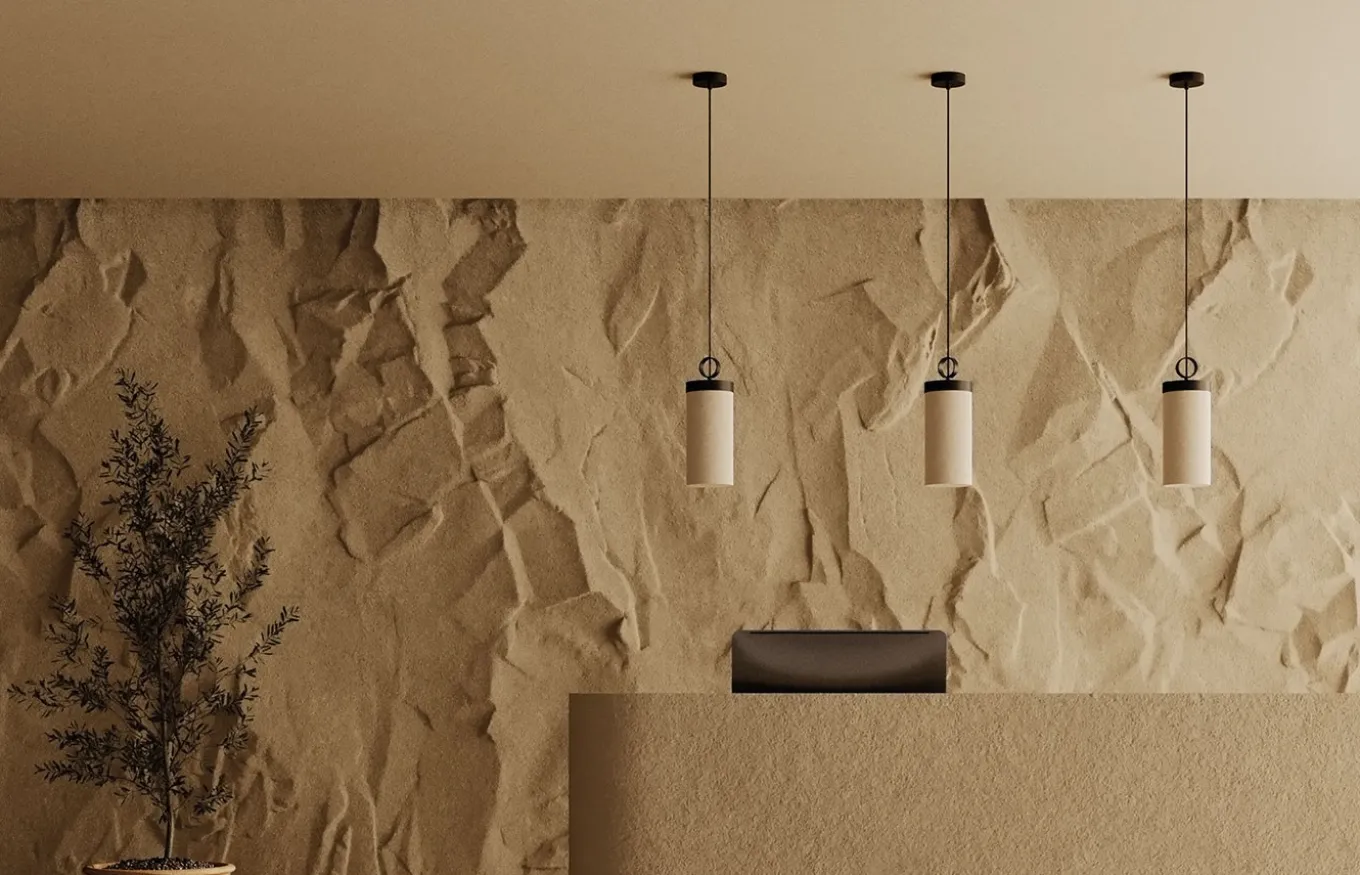 La Lámpara colgante Nooi, diseñada por Pepe Fornas en 2022, tiene una pantalla de lino color crema produciendo, por esta razón una iluminación especial. Puede colocarse aislada o en grupos de lámparas según el espacio elegido, en viviendas, oficinas o tiendas.