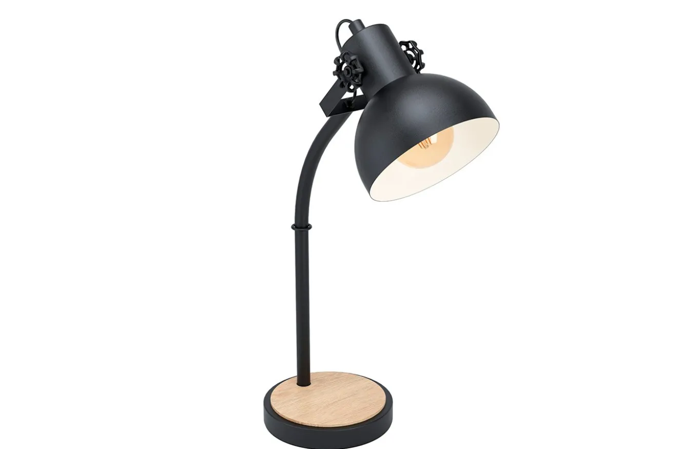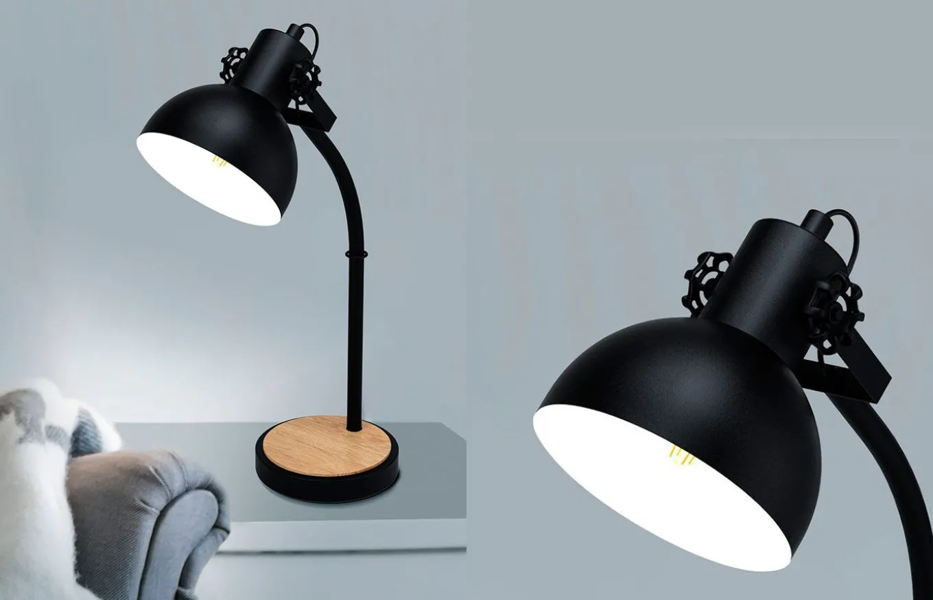 La lámpara de sobremesa Lubenham está fabricada en metal color negro y tiene un cabezal giratorio con un interior en color crema. El elemento de madera unido a la base de la lámpara asegura un carácter acogedor y completa las tendencias de decoración de estilo vintage e industrial.