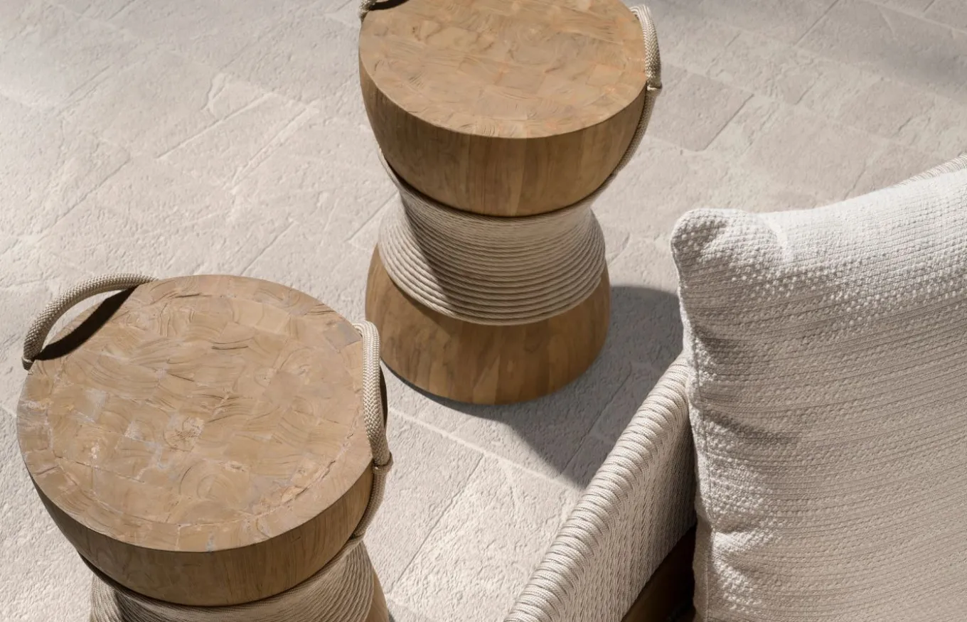 La colección de exterior Desire de Joenfa ofrece muebles cálidos y funcionales para jardines y terrazas, fabricados con materiales de alta calidad. La colección está diseñada para resistir las inclemencias del tiempo y brindar confort. Joenfa es una empresa española especializada en mobiliario de interior y exterior, destacando por su uso de materiales naturales y sostenibles como la teca reciclada y fibras artesanales.