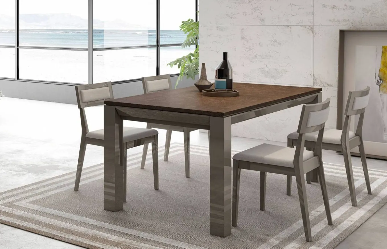 Mesa de comedor perteneciente a la colección Ginza + de A.Brito, una marca de origen portugués que trabaja con materiales de la más alta gama y procesos industriales de última generación, dando lugar a piezas de carácter modular polivalentes y contemporáneas con unos acabados de calidad.