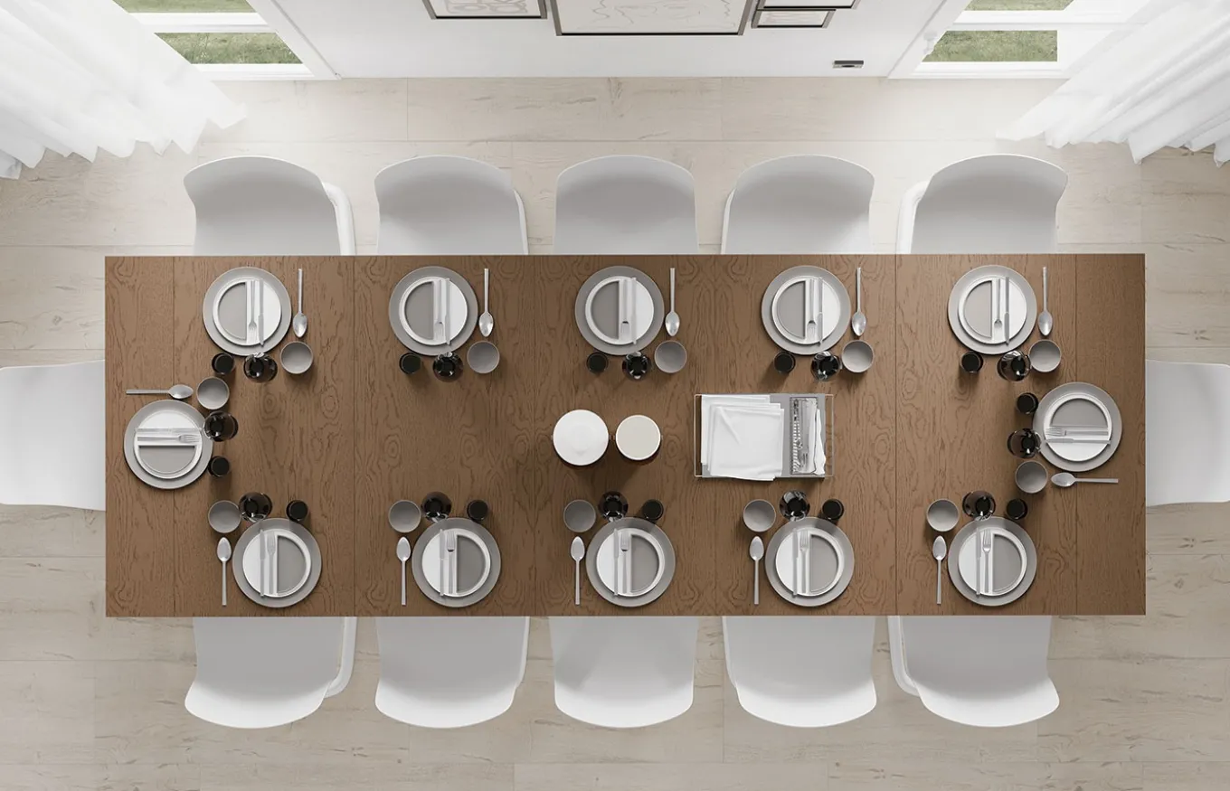 Mesa consola extensible de estilo moderno perteneciente a la colección Kendra. Kendra es el complemento perfecto que no puede faltar en tu comedor para aprovechar al máximo el espacio. Podrás transformar fácilmente la consola en una gran mesa de comedor.
