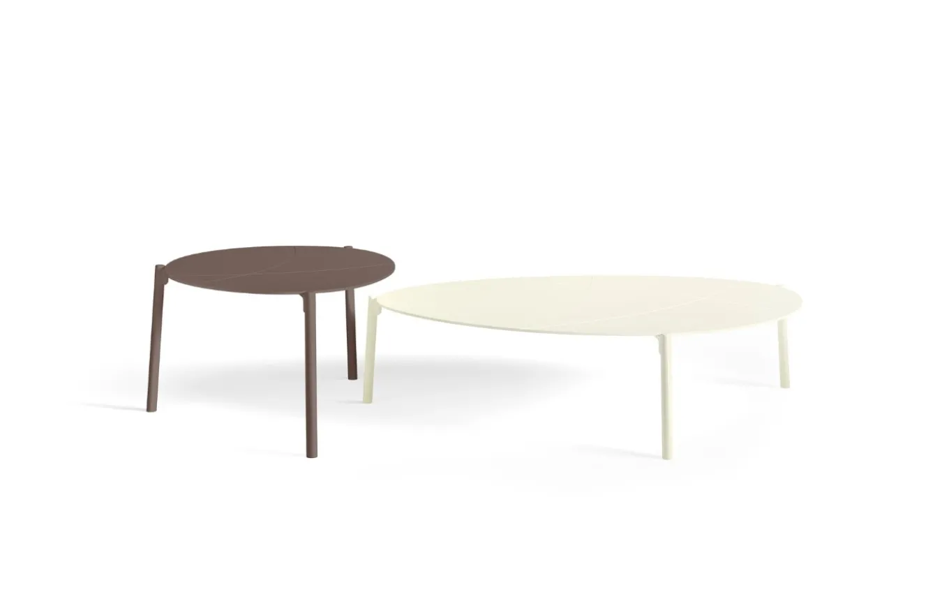 Tiene una estructura de aluminio de color marrón, en el caso de la mesa alta, y una estructura de aluminio de color ivory, en el caso de la mesa baja. Cada una de las mesas son independientes, pero se combinan a la perfección de manera conjunta en tu espacio al aire libre.