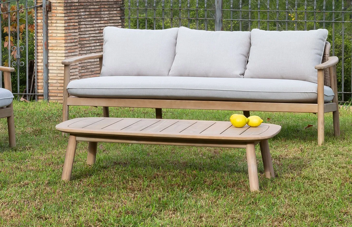 La colección Forest de Arkimueble destaca por su diseño elegante y el uso de madera de acacia con cuerda sintética, ideal para exteriores. Además, su atractivo veteado natural aporta calidez y elegancia a cualquier espacio.